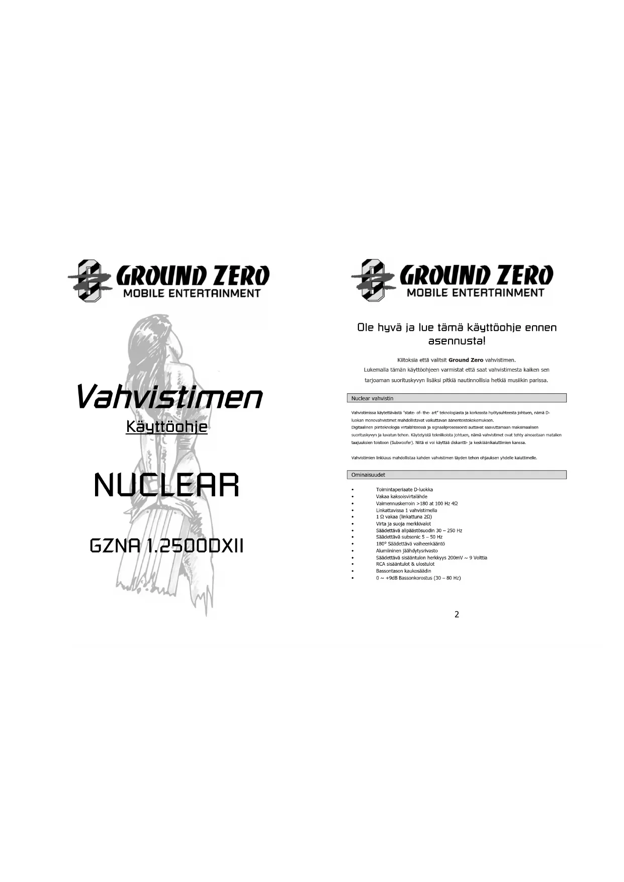 KÄYTTÖOHJE GZNA 1.2500DXII Ground Zero