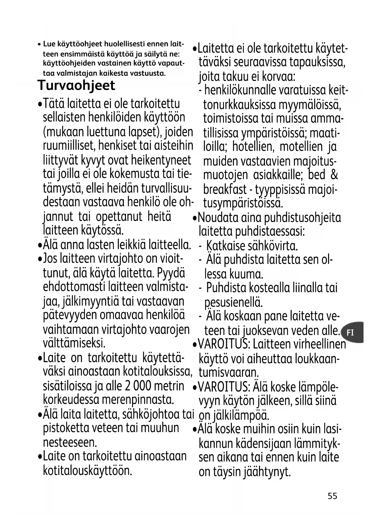 - Laite on tarkoitettu ainoastaan kotitalouskäyttöön.