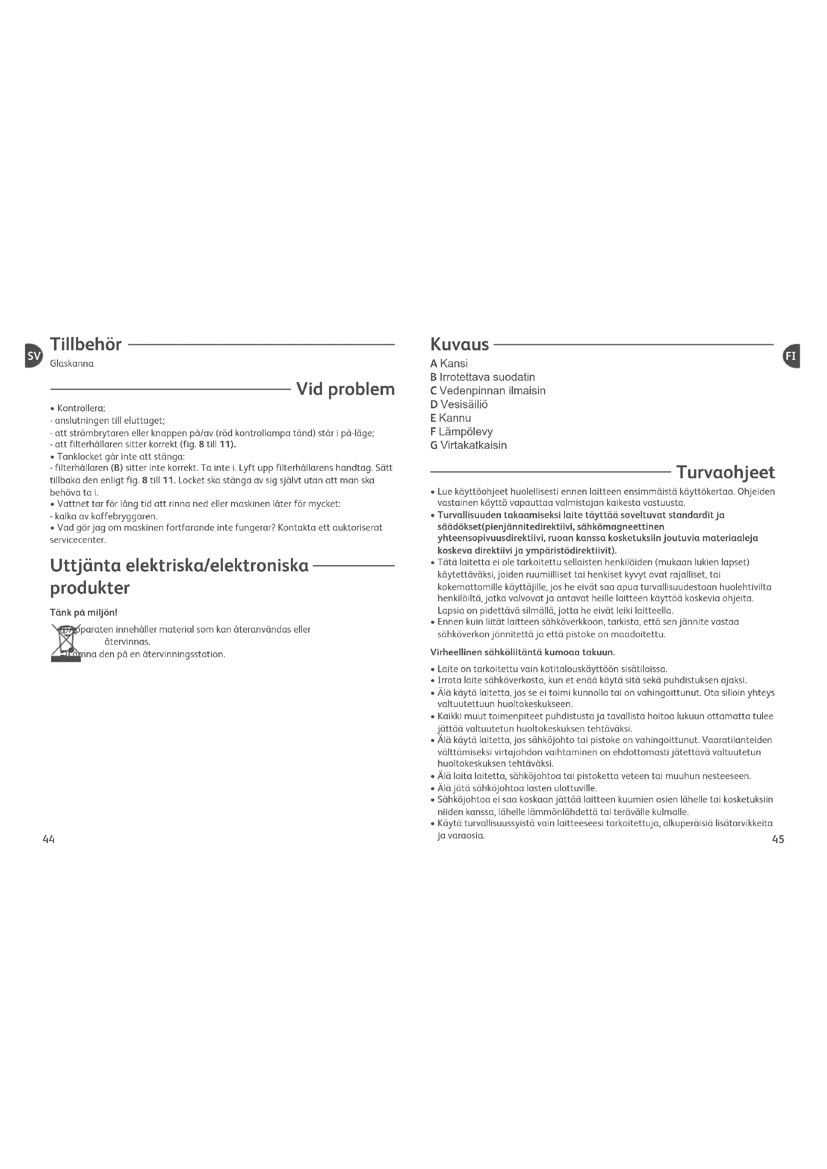 - Huuhtele kahvinkeitin keittämällä 2–3 kertaa 1 litra vettä. Takuu ei ole voimassa laitteissa, joiden käyttöhäiriöt johtuvat kalkinpoiston laiminlyönnistä. Lisälaitteet Lasinen kannu