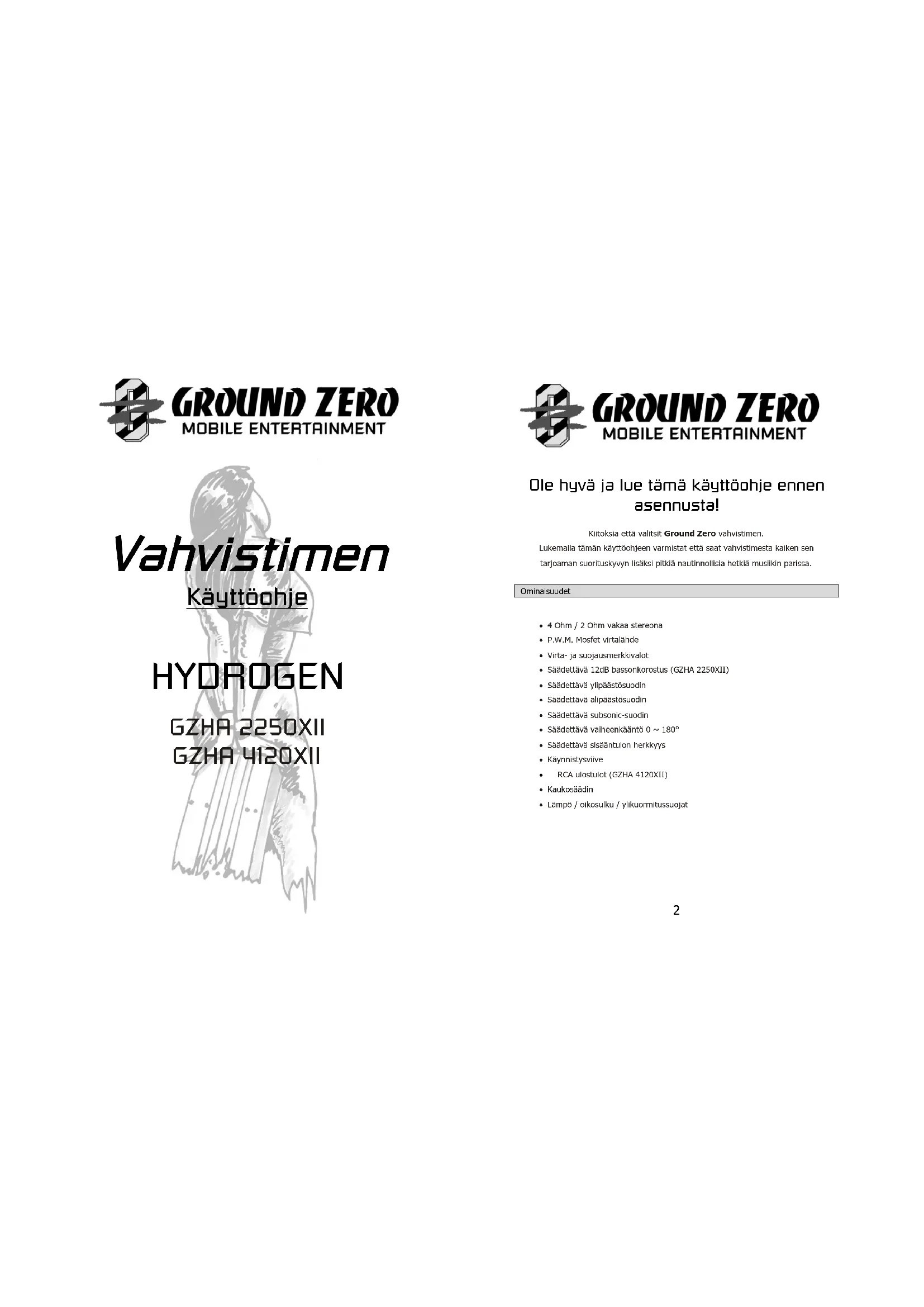 KÄYTTÖOHJE GZHA 2250 X Ground Zero