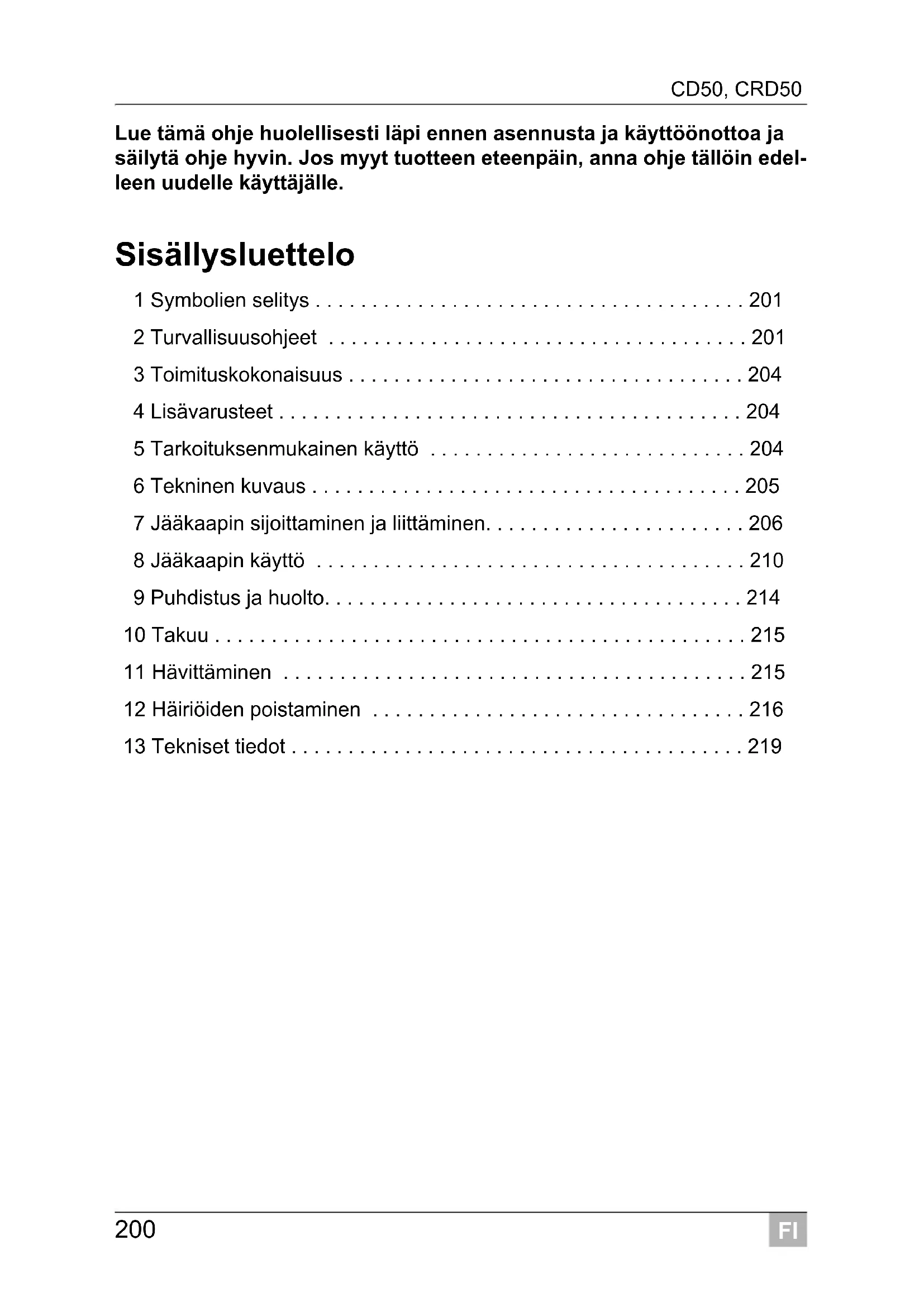 - 13 Tekniset tiedot FI CD50, CRD50 Symbolien selitys p. 219
