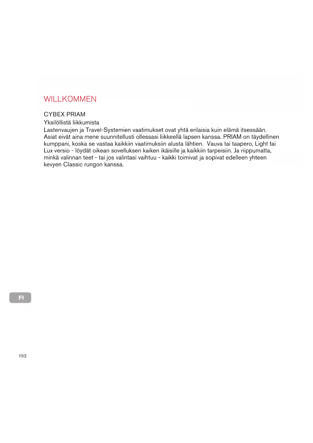 WILLKOMMEN Lastenvaujen ja Travel-Systemien vaatimukset ovat yhtä erilaisia kuin elämä itsessään. Asiat eivät aina mene suunnitellusti ollessasi liikkeellä lapsen kanssa. PRIAM on täydellinen kumppani, koska se vastaa kaikkiin vaatimuksiin alusta lähtien. Vauva tai taapero, Light tai Lux versio - löydät oikean sovelluksen kaiken ikäisille ja kaikkiin tarpeisiin. Ja riippumatta, minkä valinnan teet - tai jos valintasi vaihtuu - kaikki toimivat ja sopivat edelleen yhteen kevyen Classic rungon kanssa. Yksilöllistä liikkumista CYBEX PRIAMFI
