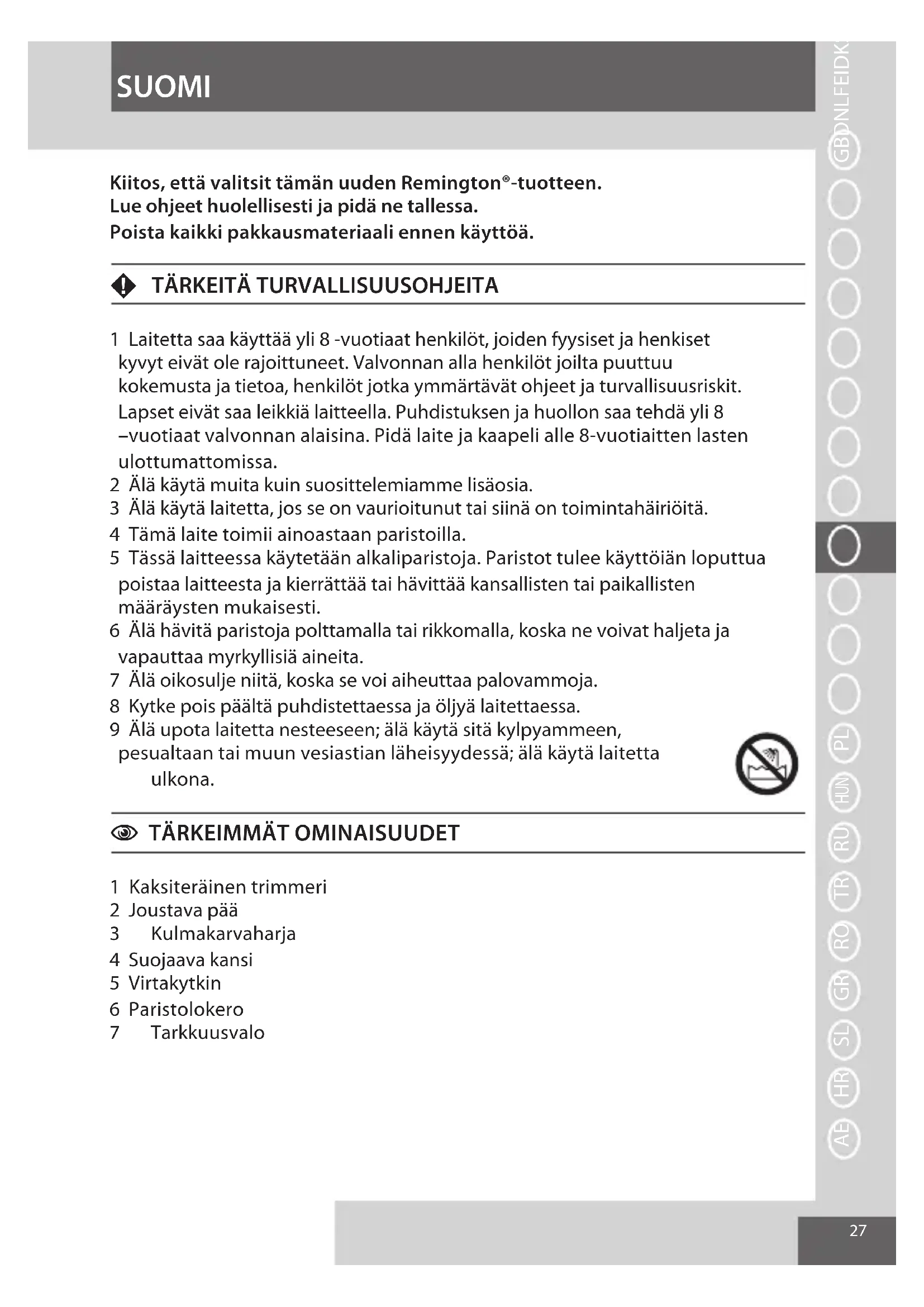 - Trimmerisi vaatii 1 AAA-alkalipariston (mukana). Suosittelemme käyttämään VARTA®-paristoja.