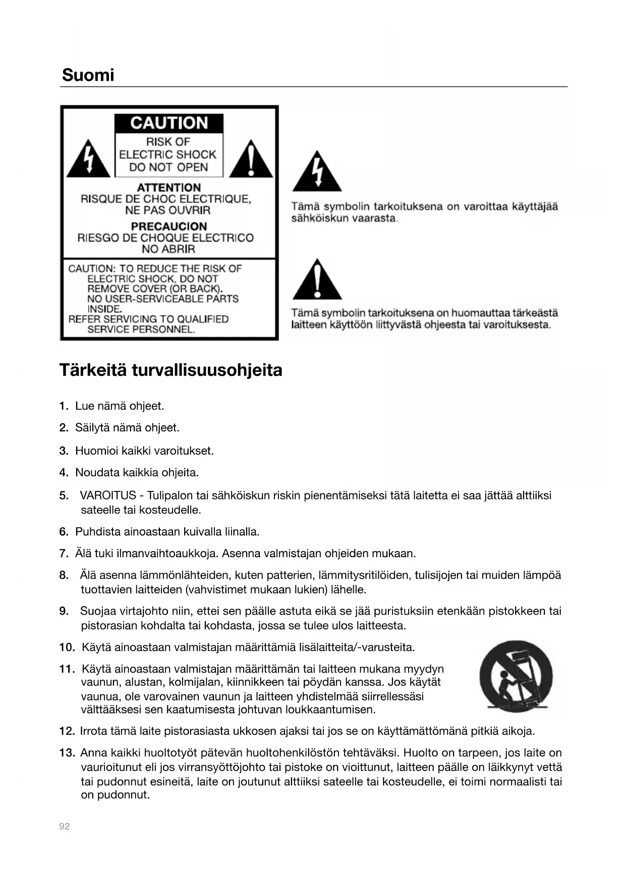 12. Irrota tämä laite pistorasiasta ukkosen ajaksi tai jos se on käyttämättömänä pitkiä aikoja.