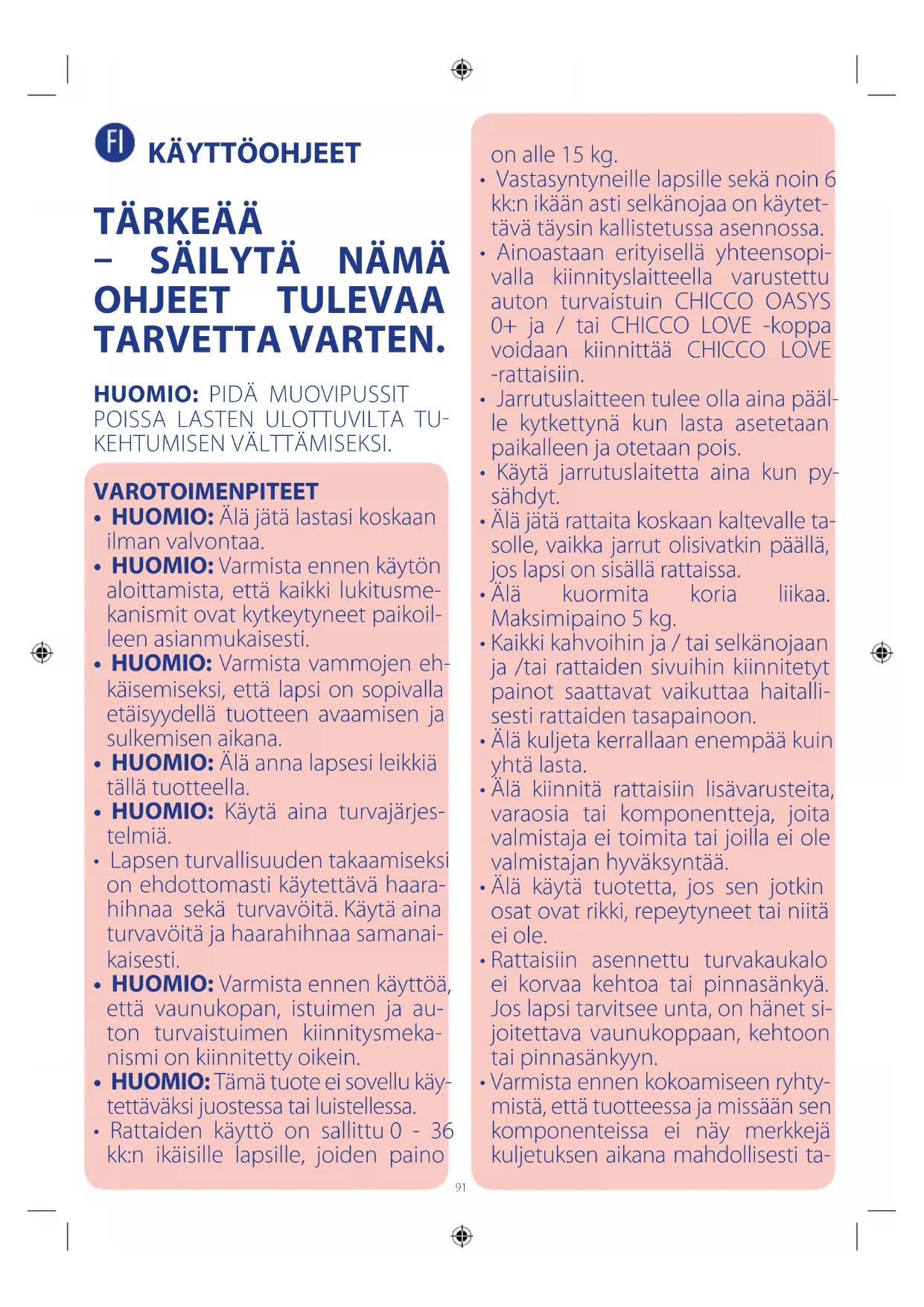 - HUOMIO: Älä jätä lastasi koskaan ilman valvontaa.