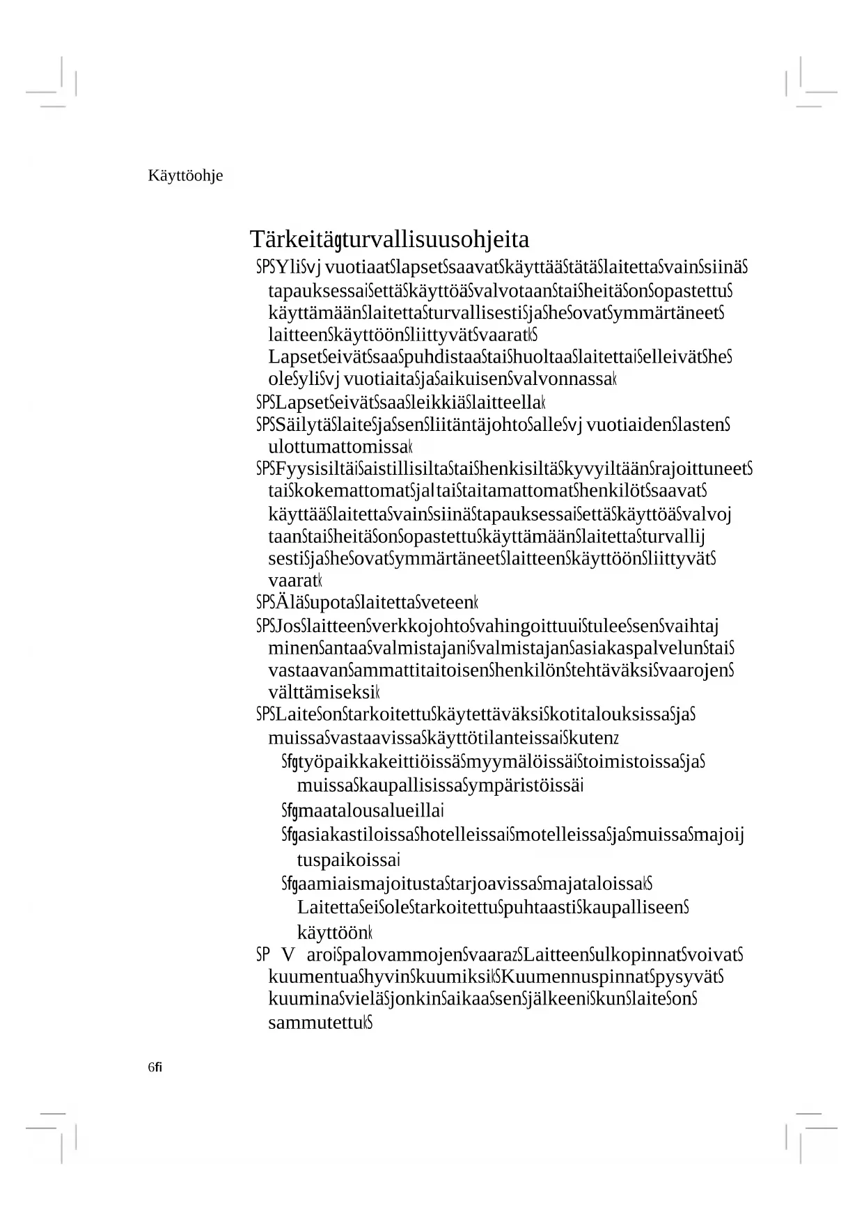 - Älä käytä laitetta ja irrota pistotulppa heti pistorasiasta, jos: ⋅ laite tai liitäntäjohto on vahingoittunut ⋅ on syytä epäillä laitteen vioittuneen putoamisen tms. jälkeen. Näissä tapauksissa laite tulee toimittaa korjattavaksi.