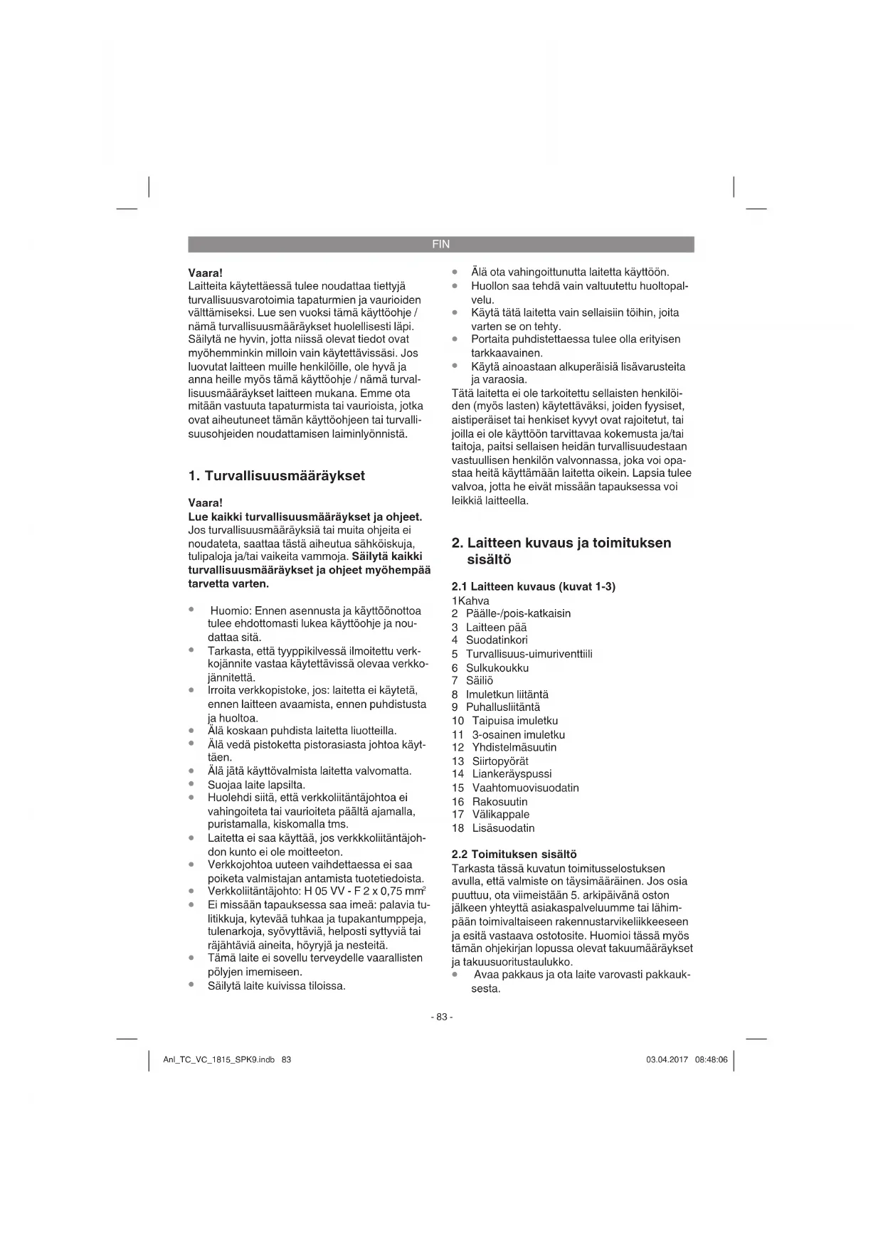 Mikä mielestäsi on laitteessa vikana (pääasiallinen vika)? Kuvaa tätä toimintavirhettä. Anl_TC_VC_1815_SPK9.indb 88Anl_TC_VC_1815_SPK9.indb 88 03.04.2017 08:48:0603.04.2017 08:48:06FIN