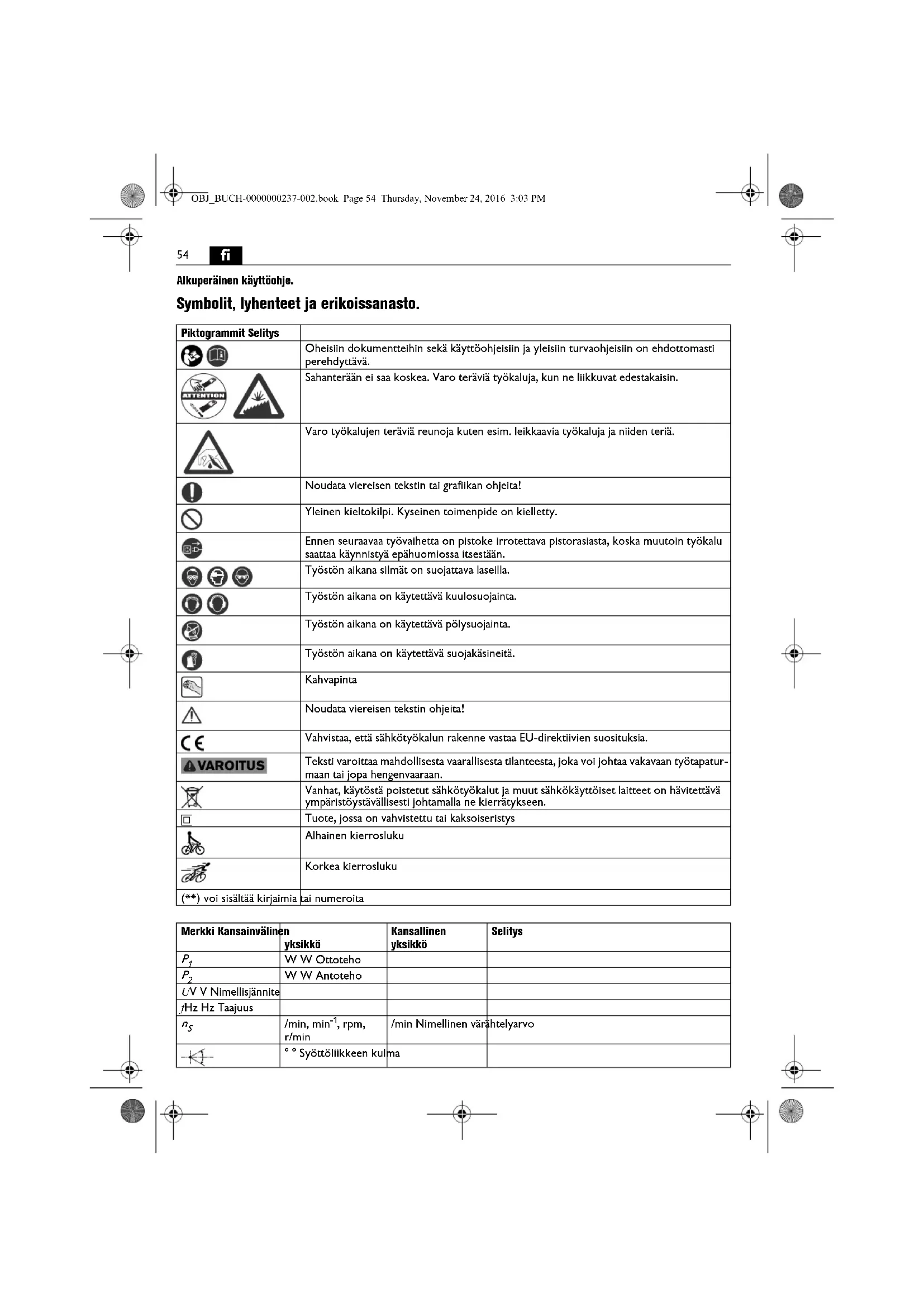 Sahkotyokalun saa ottaa kayttoon vasta sitten, kun ensin on perehydtty kaytttohjeeseen seka oheislin yleeisi turvaohieisi (julfkaisunumbero