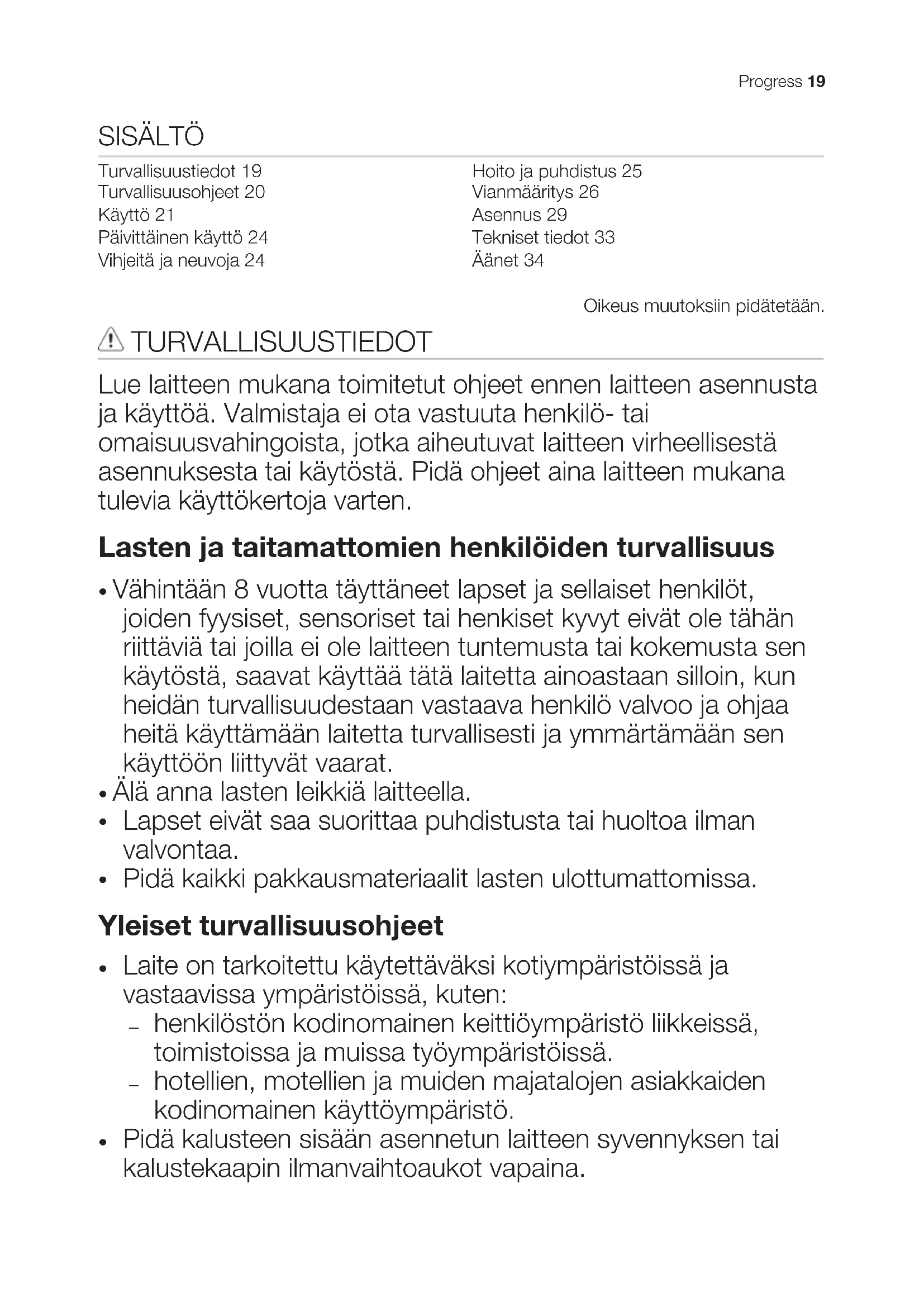 - Lapset eivät saa suorittaa puhdistusta tai huoltoa ilman valvontaa.