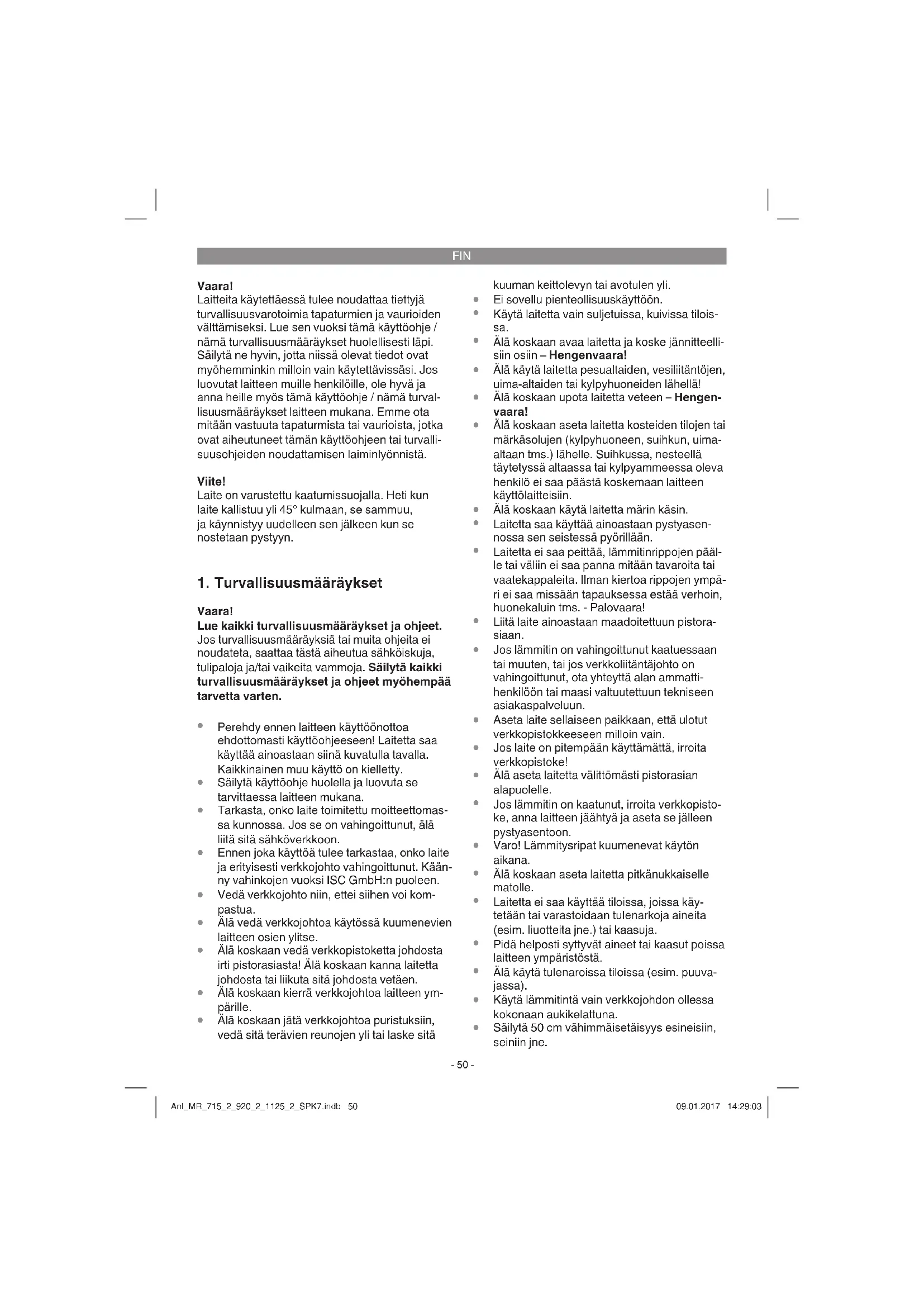 Säilytä 50 cm vähimmäisetäisyys esineisiin, seiniin jne. Anl_MR_715_2_920_2_1125_2_SPK7.indb 50Anl_MR_715_2_920_2_1125_2_SPK7.indb 50 09.01.2017 14:29:0309.01.2017 14:29:03FIN