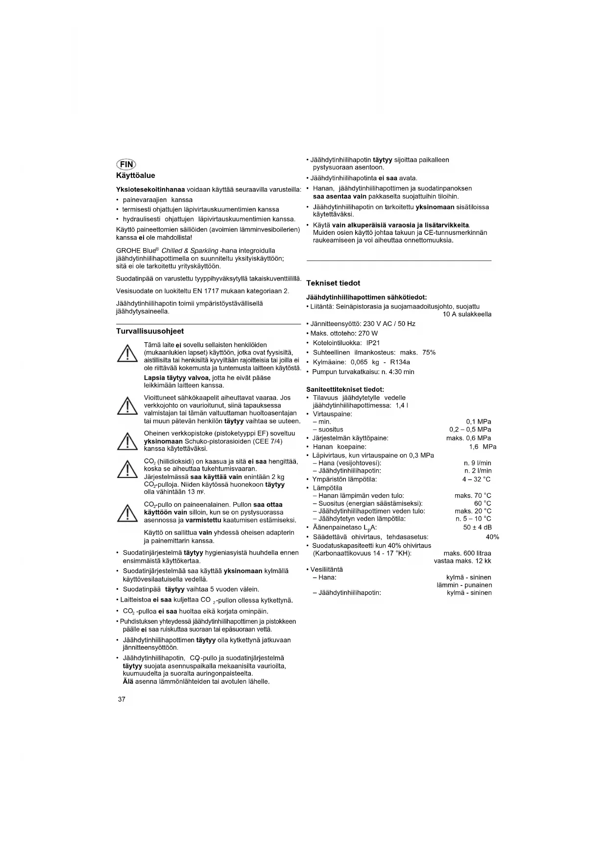KÄYTTÖOHJE Blue Chilled and Sparkling system GROHE