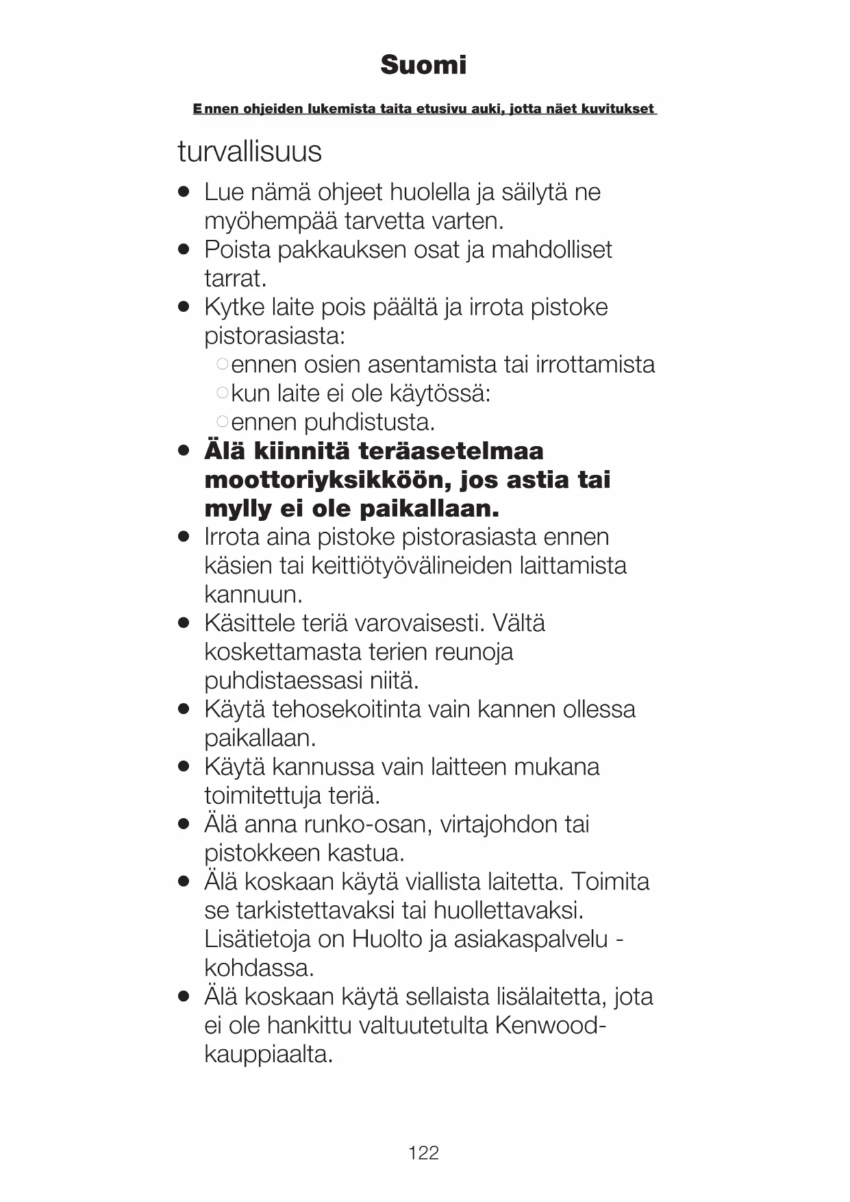 Älä koskaan käytä sellaista lisälaitetta, jota ei ole hankittu valtuutetulta Kenwood- kauppiaalta.
