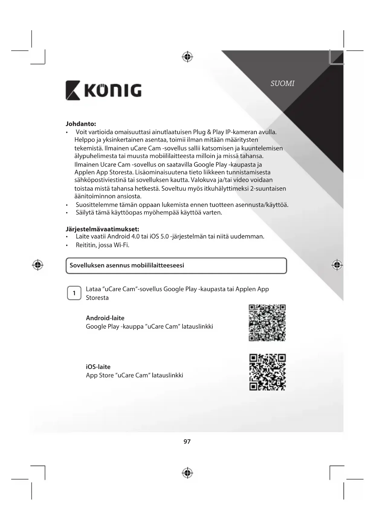 - VoitvartioidaomaisuuttasiainutlaatuisenPlug&PlayIP-kameranavulla. Helppojayksinkertainenasentaa,toimiiilmanmitäänmääritysten tekemistä.IlmainenuCareCam-sovellussalliikatsomisenjakuuntelemisen älypuhelimestataimuustamobiililaitteestamilloinjamissätahansa. IlmainenUcareCam-sovellusonsaatavillaGooglePlay-kaupastaja ApplenAppStoresta.Lisäominaisuutenatietoliikkeentunnistamisesta sähköpostiviestinätaisovelluksenkautta.Valokuvaja/taivideovoidaan toistaamistätahansahetkestä.Soveltuumyösitkuhälyttimeksi2-suuntaisen äänitoiminnonansiosta.