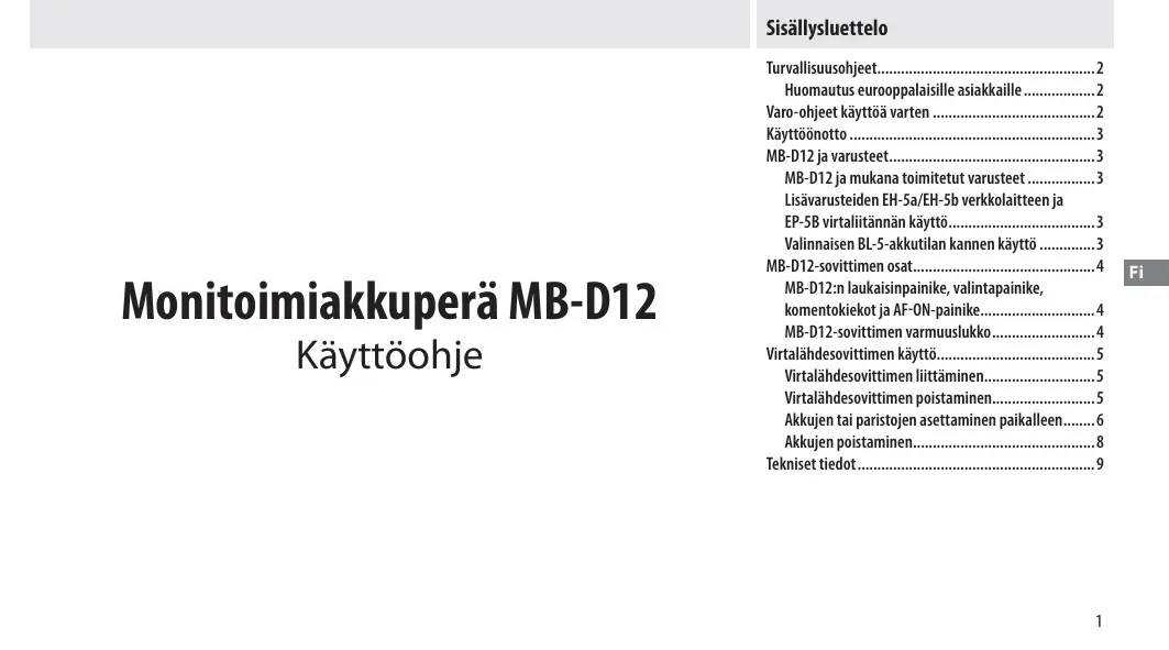 KÄYTTÖOHJE MB-12 NIKON