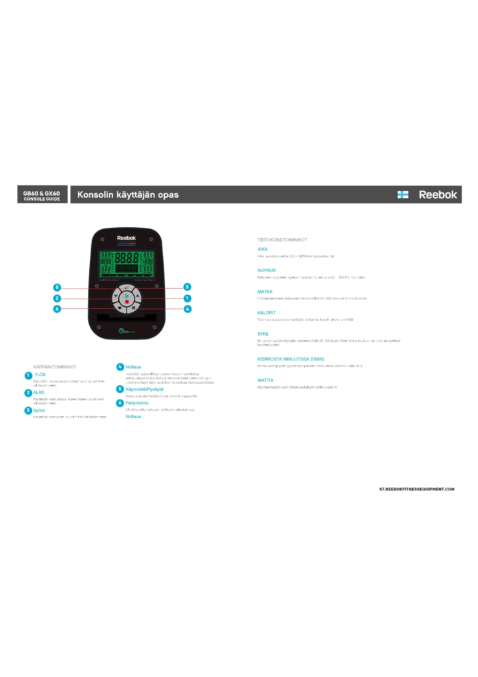Löydä laitteen käyttöohje ilmaiseksi One GX60 Reebok PDF-muodossa.