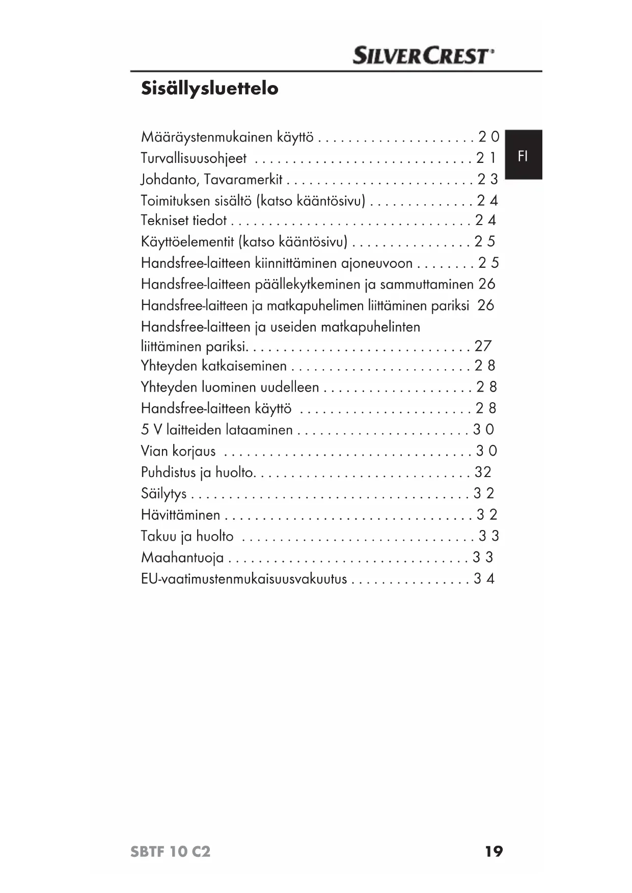 - Sisällysluettelo Määräystenmukainen käyttö p. 20