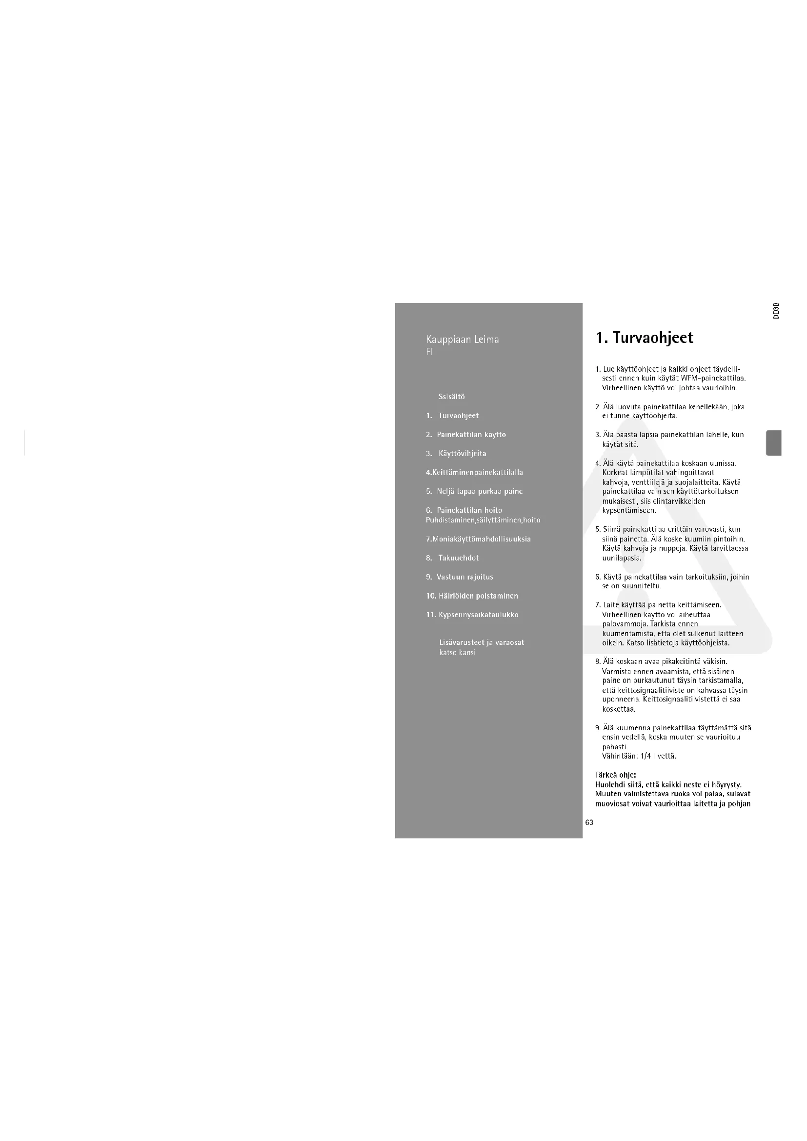 sesti ennen kuin käytät WFM-painekattilaa. Virheellinen käyttö voi johtaa vaurioihin.