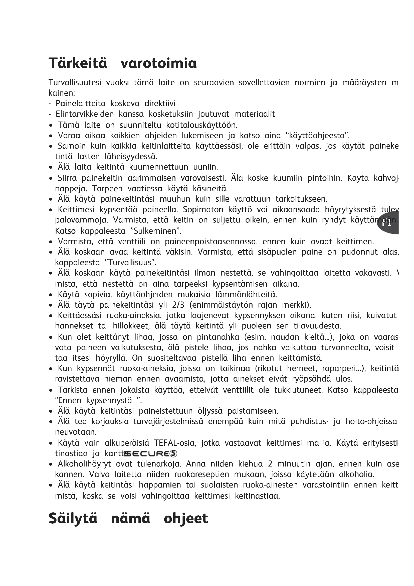 KÄYTTÖOHJE Secure 5 P2500732 TEFAL