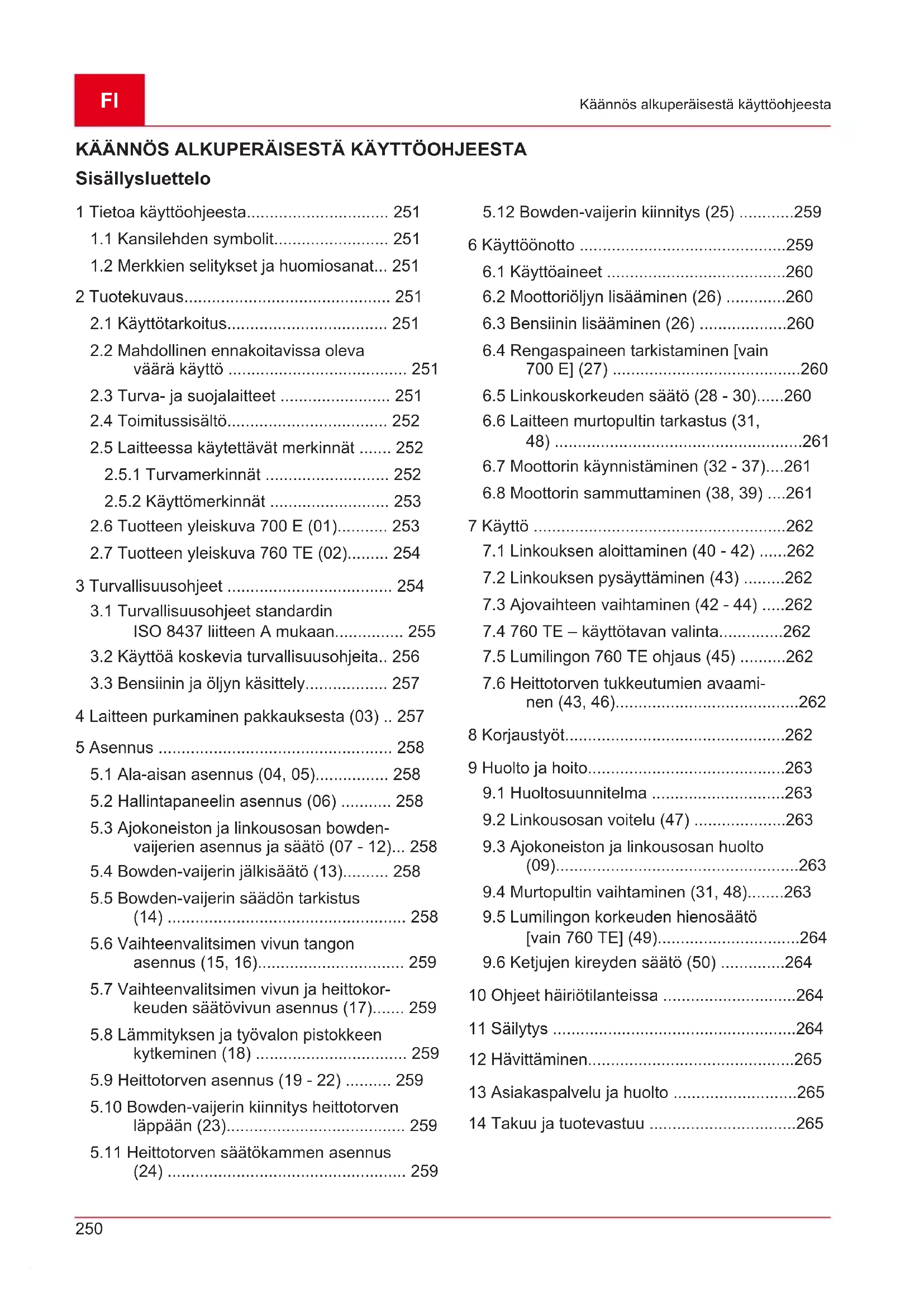 Käännös alkuperäisestä käyttöohjeesta KÄÄNNÖS ALKUPERÄISESTÄ KÄYTTÖOHJEESTA Sisällysluettelo 1 Tietoa käyttöohjeesta............................... 251