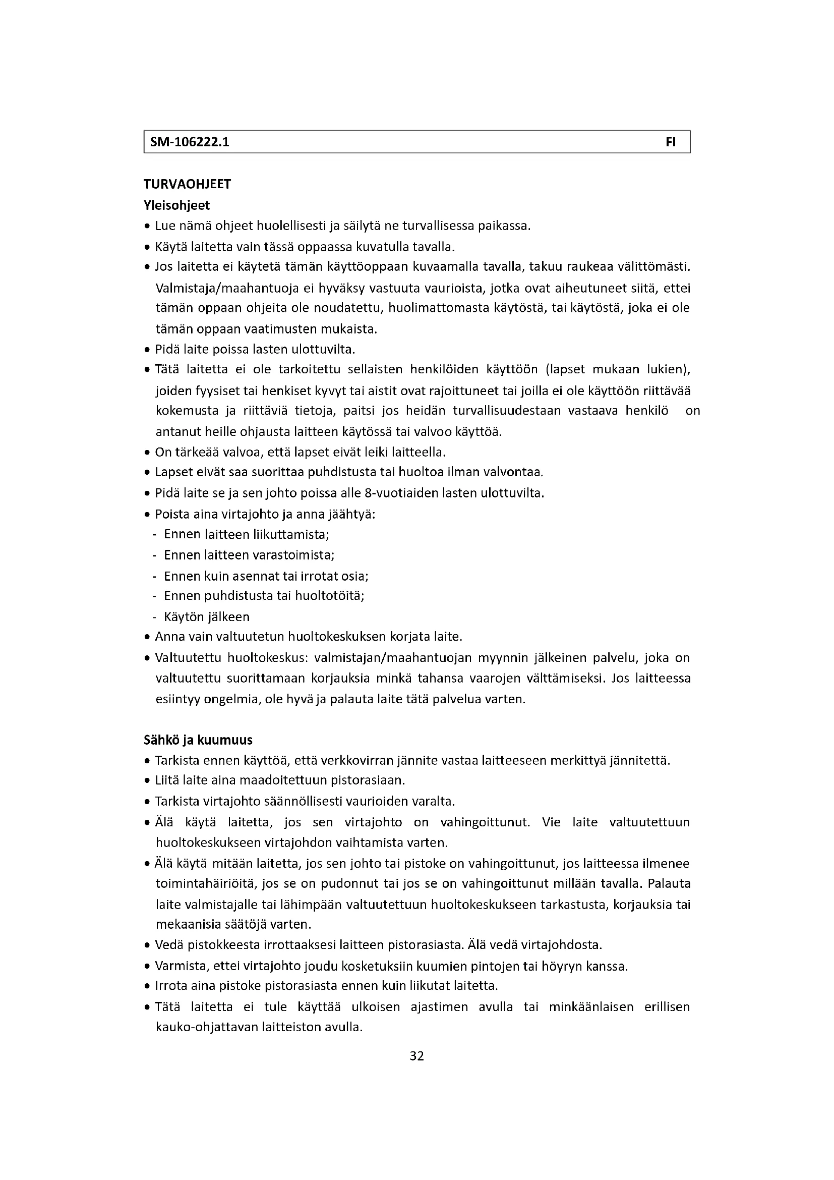 - Lapset eivat saa suorittaa puhdistusta tai huoltoa ilman valvontaa.