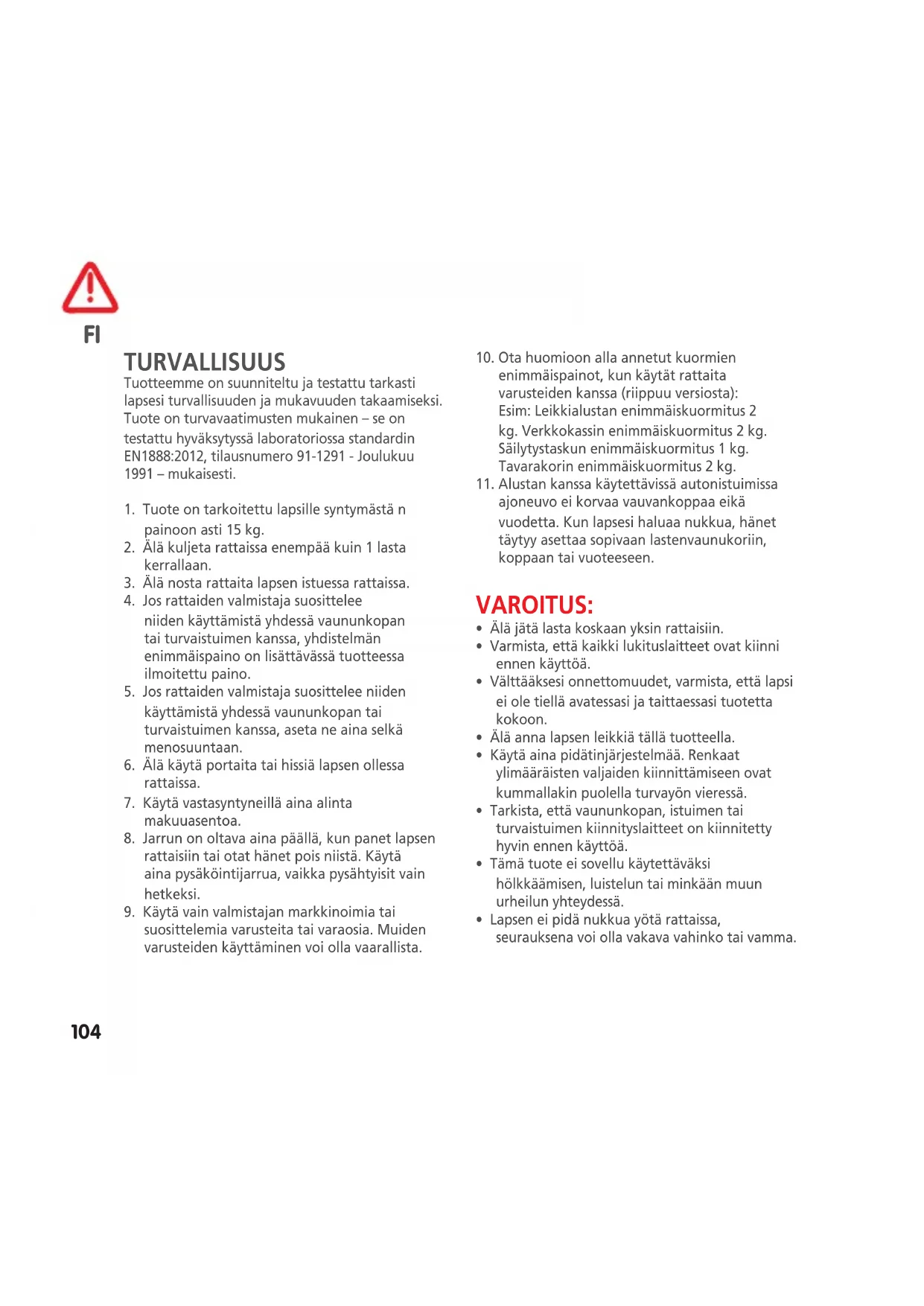 - Lapsen ei pidä nukkua yötä rattaissa, seurauksena voi olla vakava vahinko tai vamma. FI105