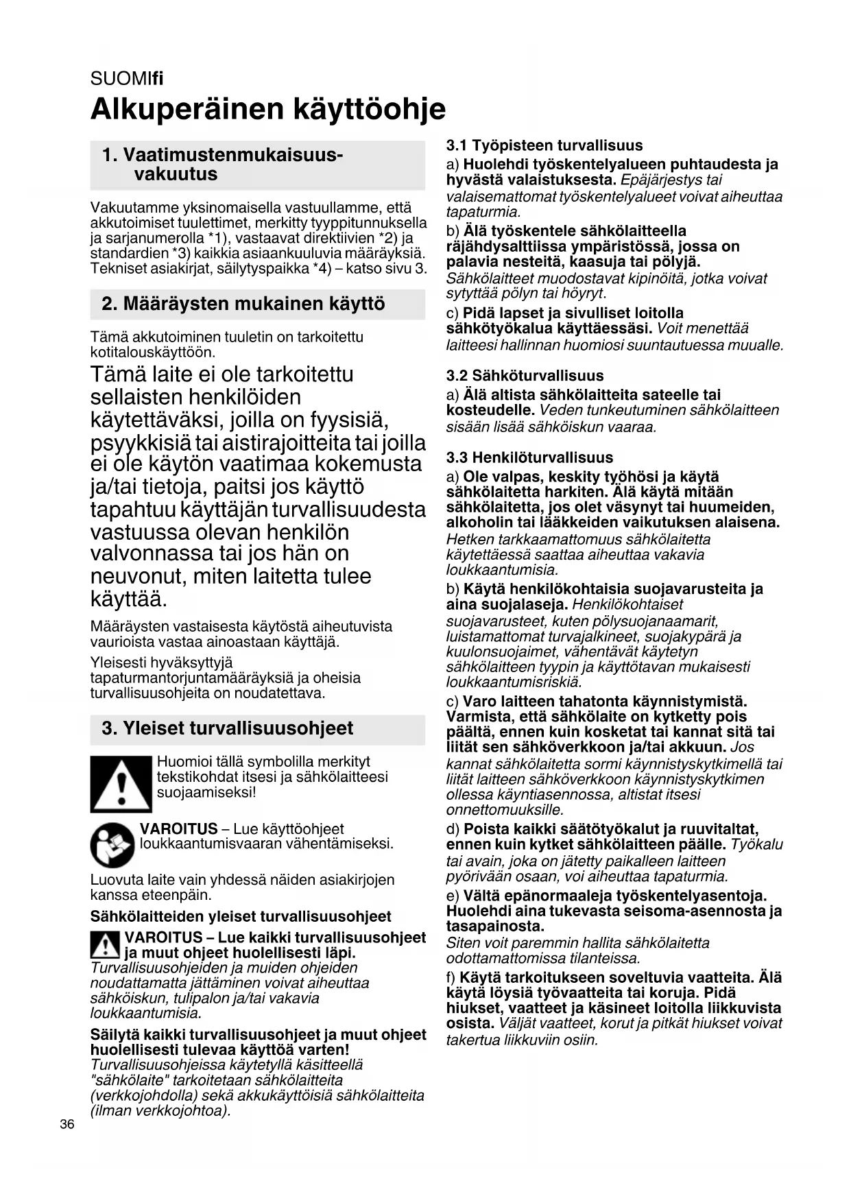 Huomioi tällä symbolilla merkityt tekstikohdat itsesi ja sahkölaitteesi suojaamiseksi!