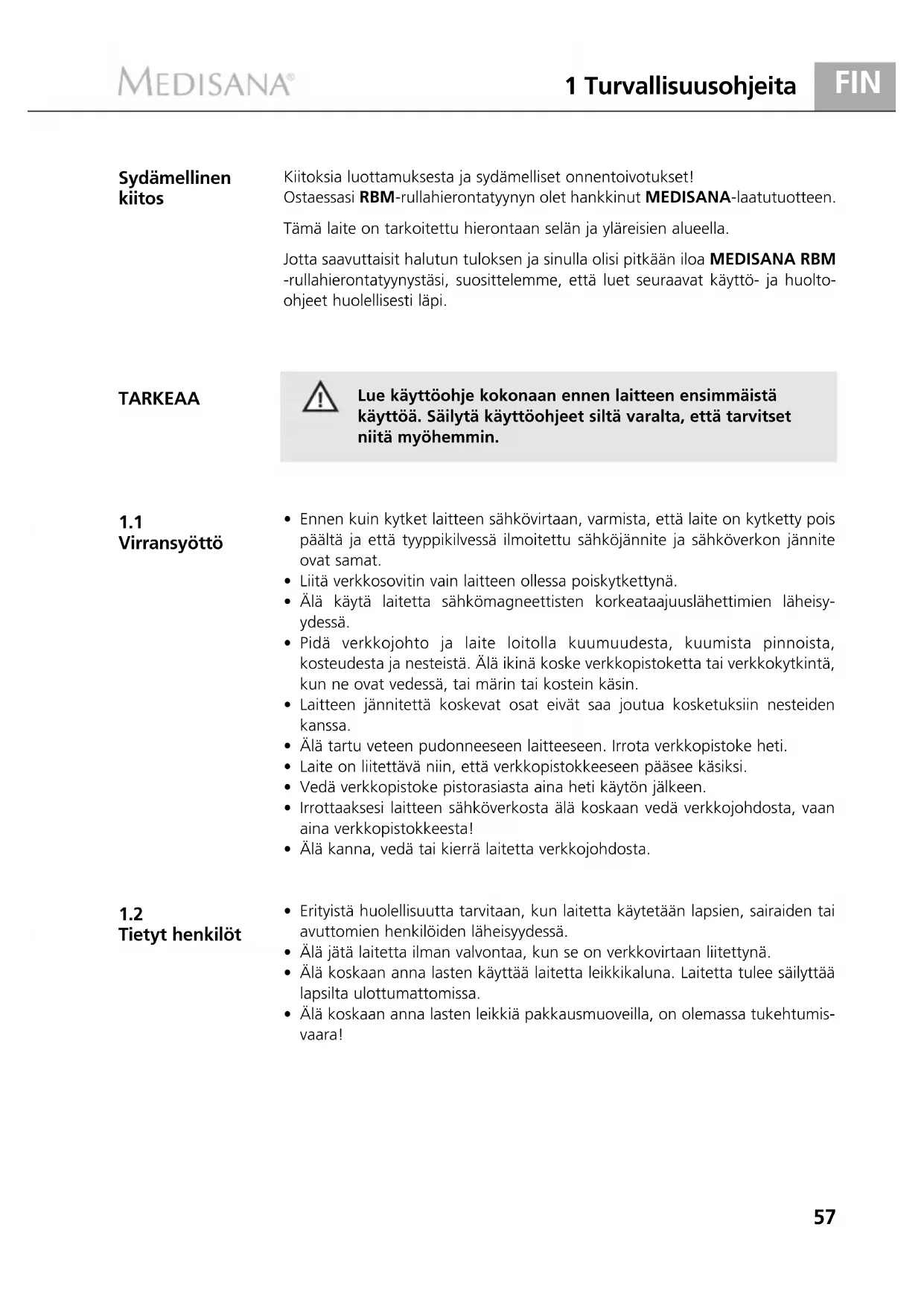 Jotta saavuttaisit halutun tuloksen ja sinulla olisi pitkään iloa MEDISANA RBM -rullahierontatyynystäsi, suosittelemme, että luet seuraavat käyttö- ja huoltoohjeet huolellisesti läpi.