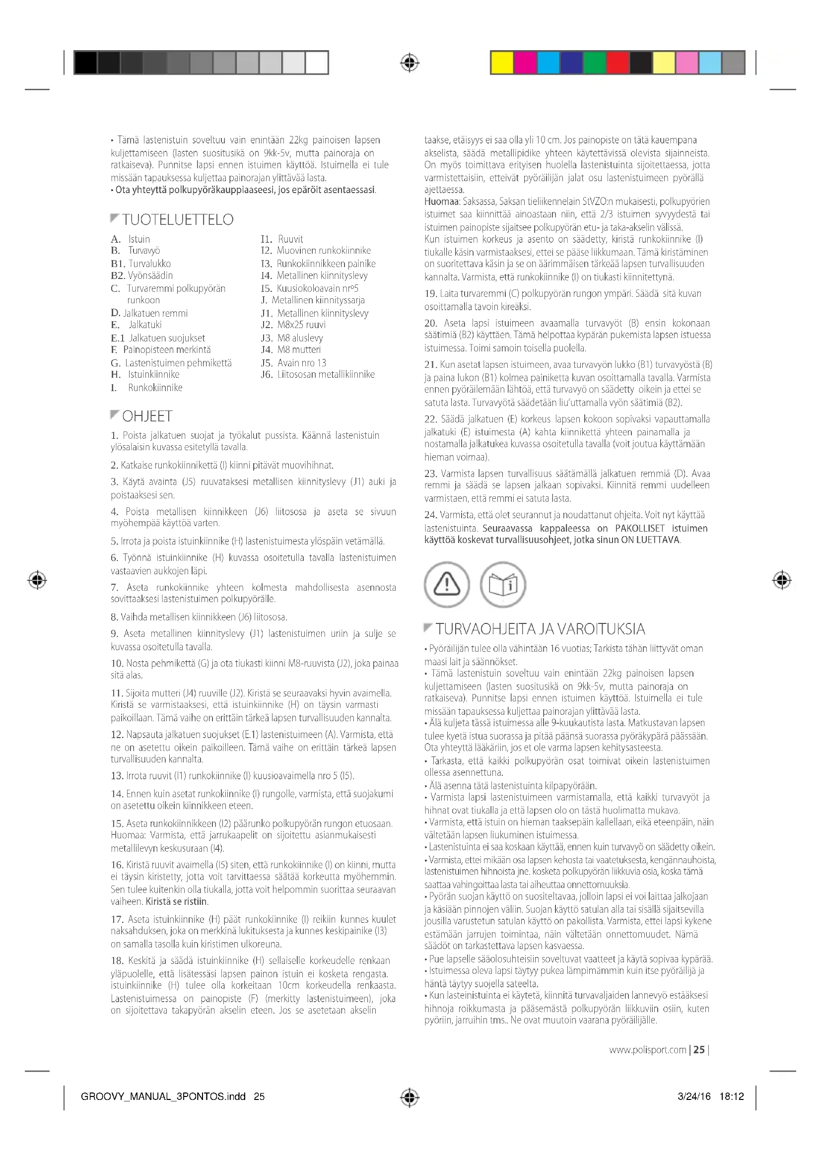 2 VUODEN TAKUU: Takuu kattaa ainoastaa mekaanisten osien valmistusvirheet. Rekisteröimällä istuimesi osoitteessa: www.polisport.com.