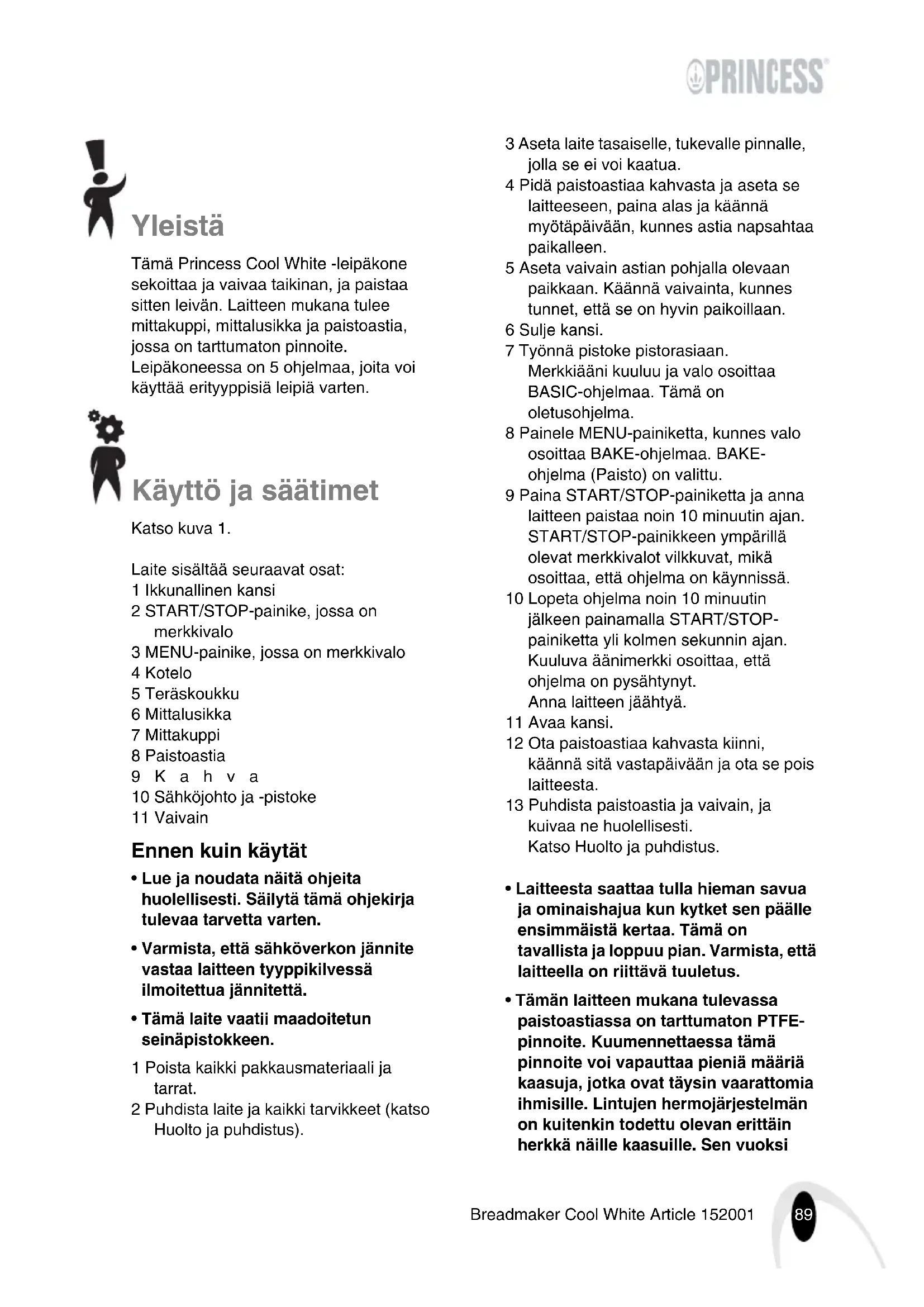 152001 - Leipäkone PRINCESS - Ilmainen käyttöohje ja opas