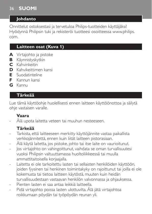 Téléchargez la notice de votre Kahvinkeitin au format PDF gratuitement ! Retrouvez votre notice HD7980 - PHILIPS et reprennez votre appareil électronique en main. Sur cette page sont publiés tous les documents nécessaires à l'utilisation de votre appareil HD7980 de la marque PHILIPS.