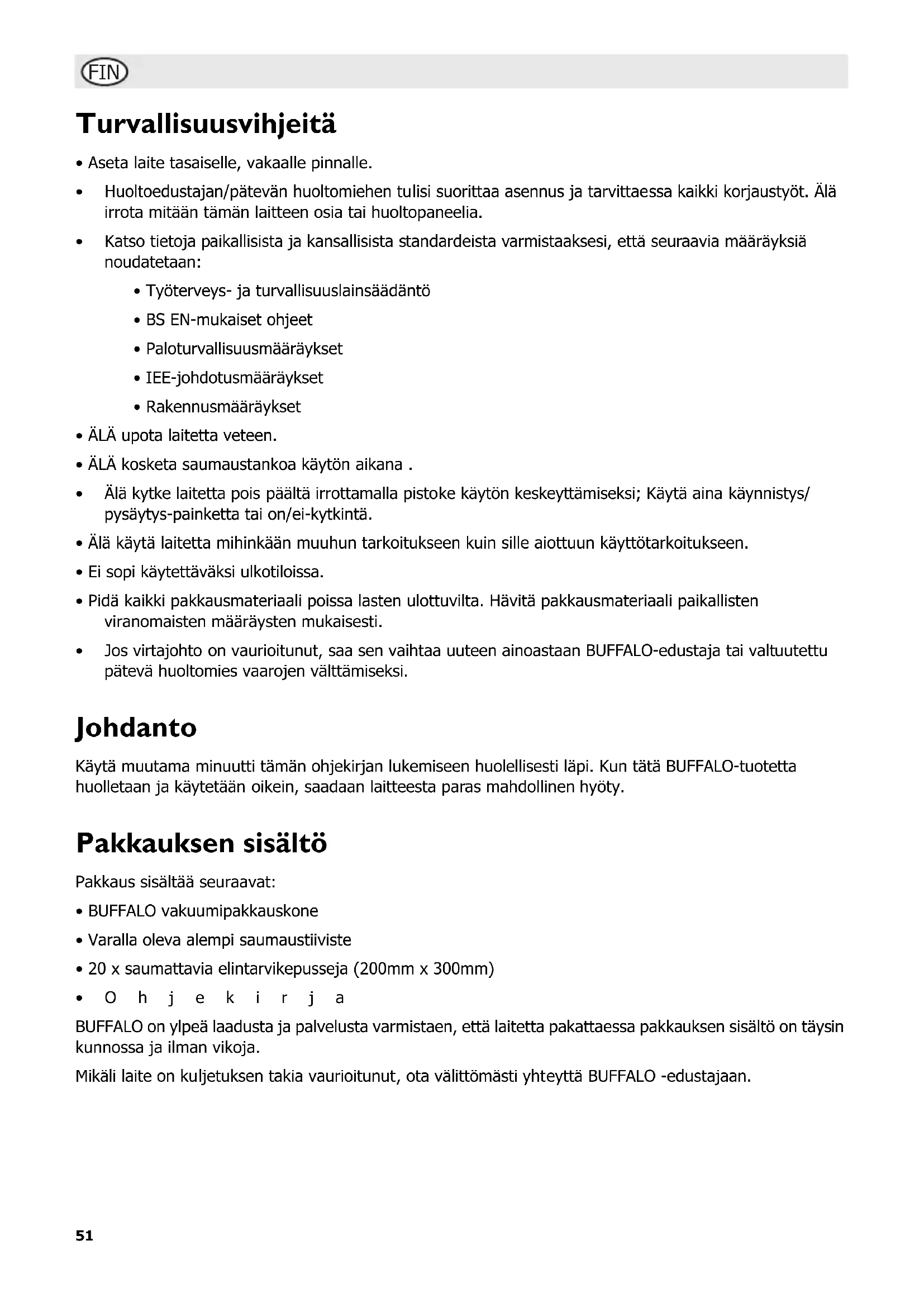 S097 - Tyhjiöpakkaukoneet BUFFALO - Ilmainen käyttöohje ja opas