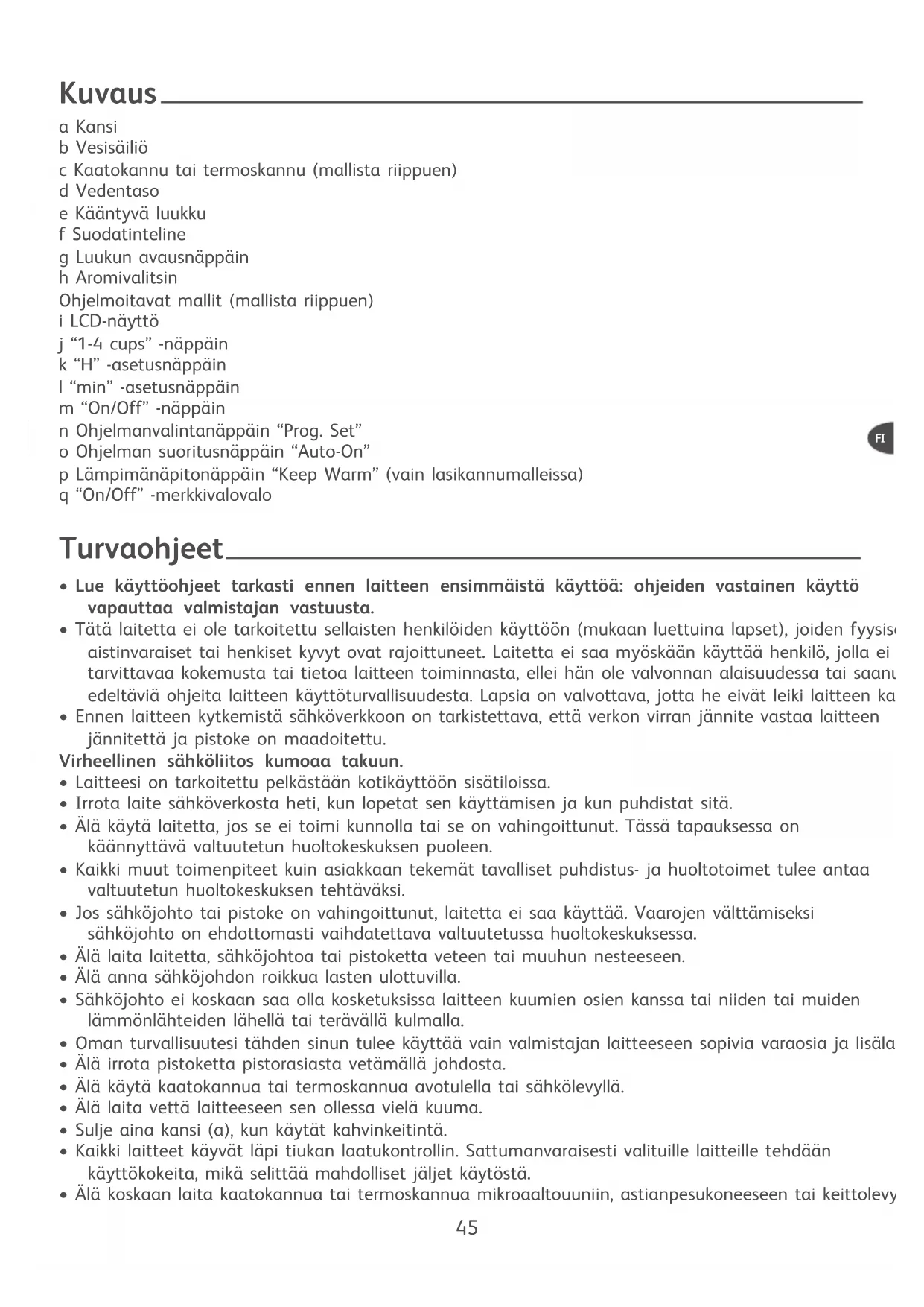 - Älä käytä kaatokannua tai termoskannua ilman kantta. Ennen ensimmäistä käyttöä