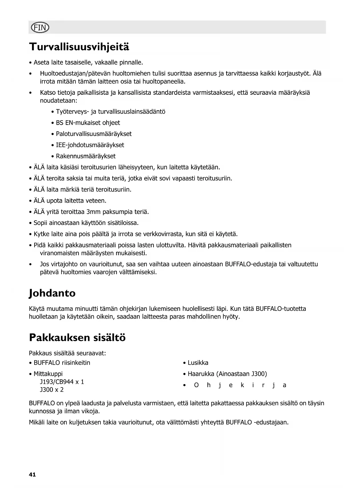 KÄYTTÖOHJE J193 BUFFALO