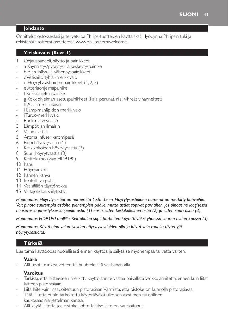KÄYTTÖOHJE HD9190/30 PHILIPS