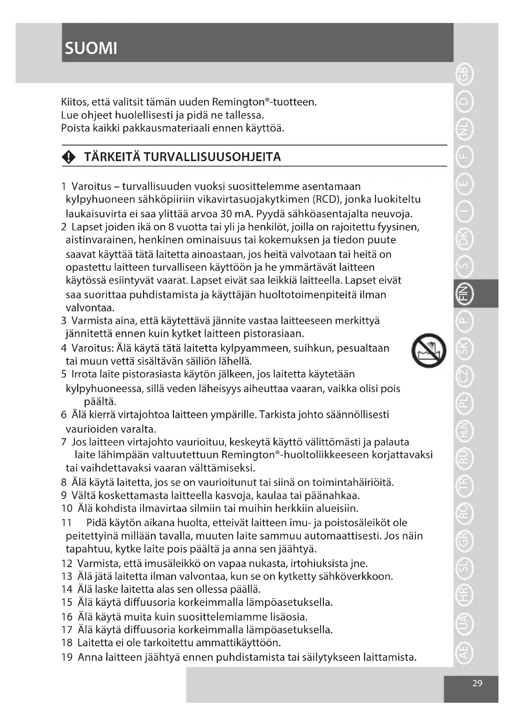 Kiitos,etta valitsit taman uuden Remington- tuotteen.