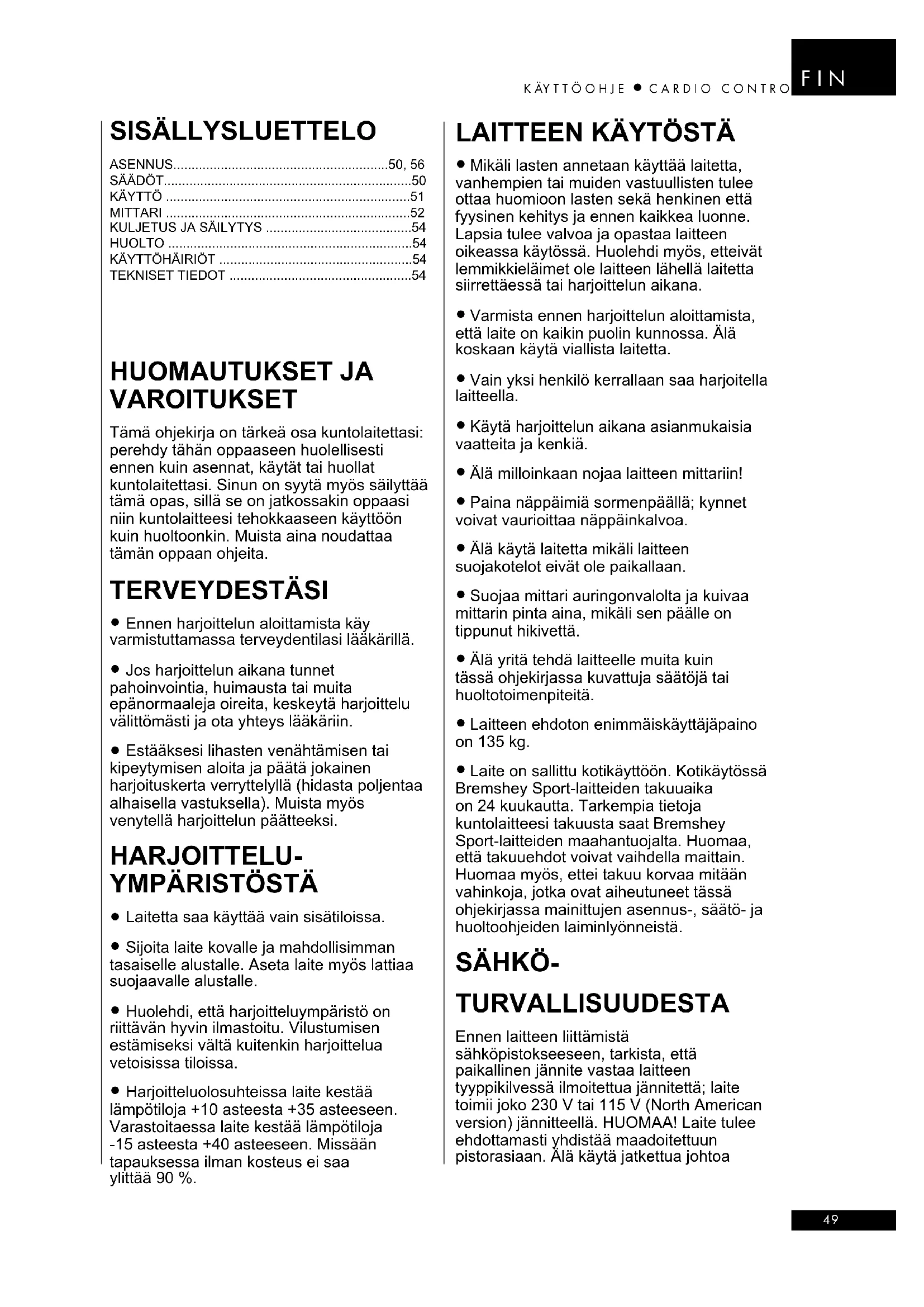 KÄYTTÖOHJE Cardio Control Bremshey