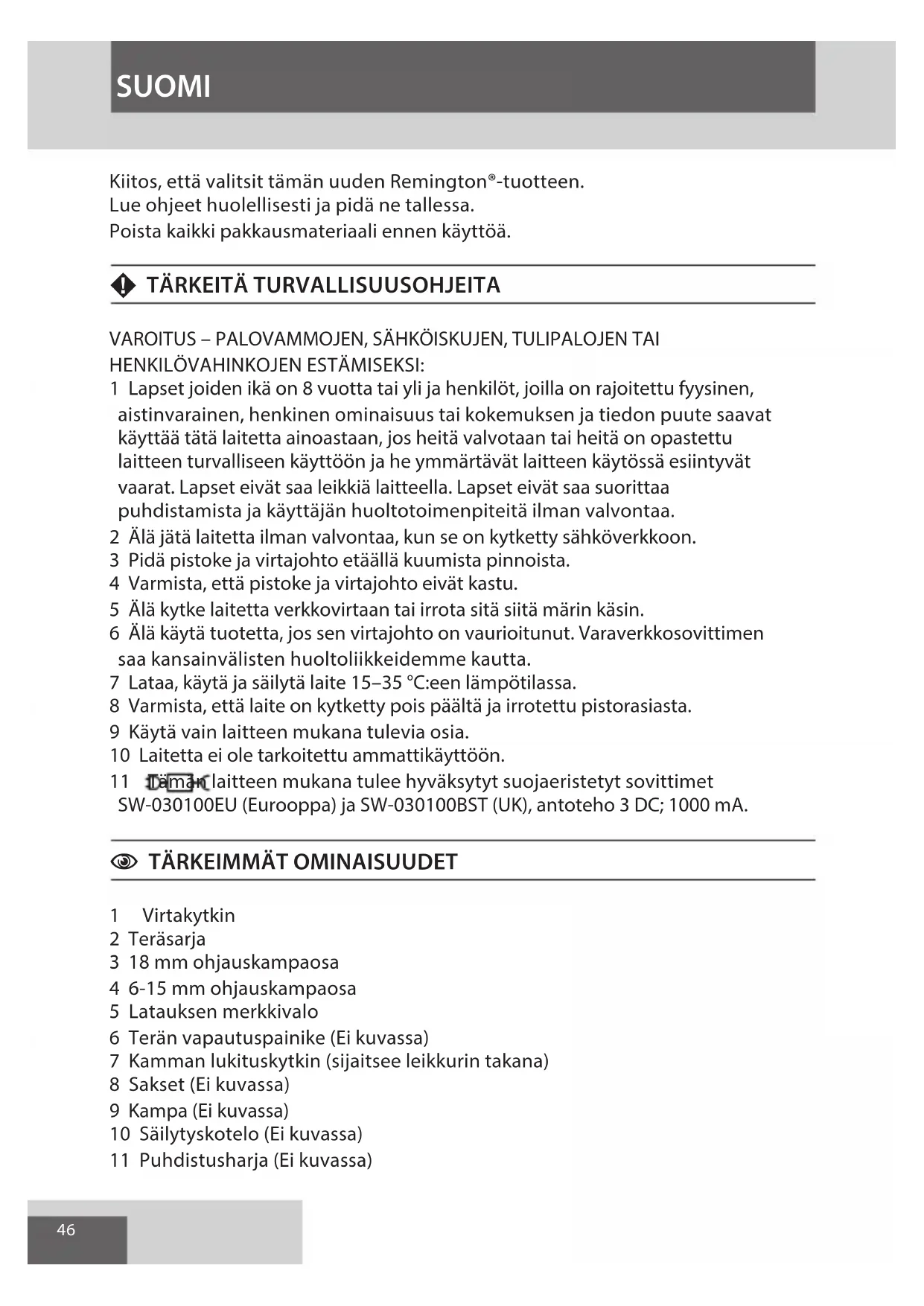 Kiitos,etta valitsit taman uuden Remington*tuotteen.