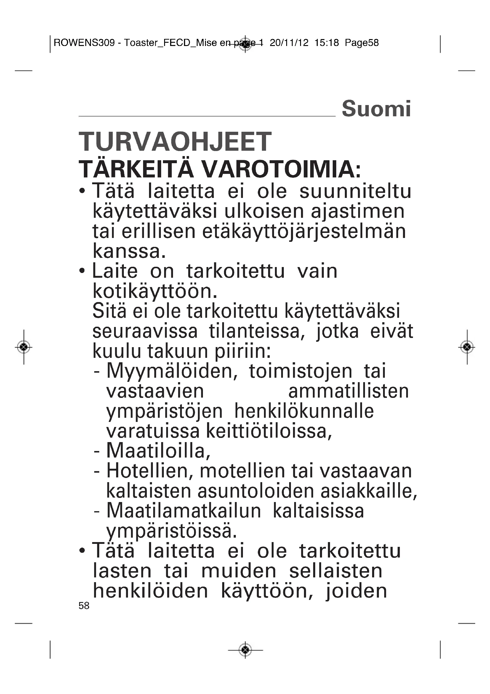 - Laite on tarkoitettu vain kotikäyttöön.