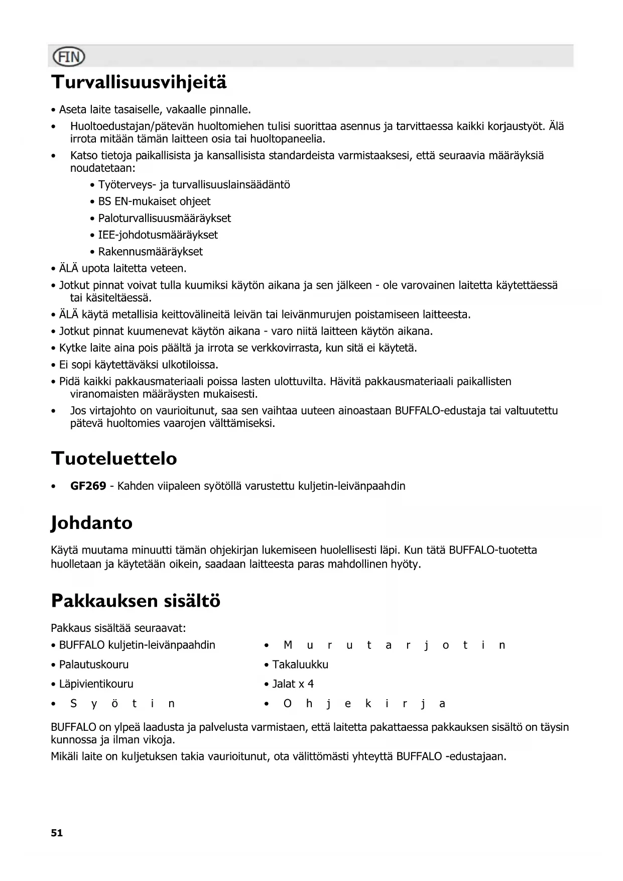 GF269 - Leivänpaahdin BUFFALO - Ilmainen käyttöohje ja opas
