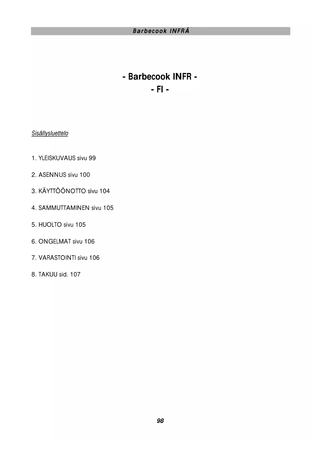 KÄYTTÖOHJE Infra Fix Classic BARBECOOK