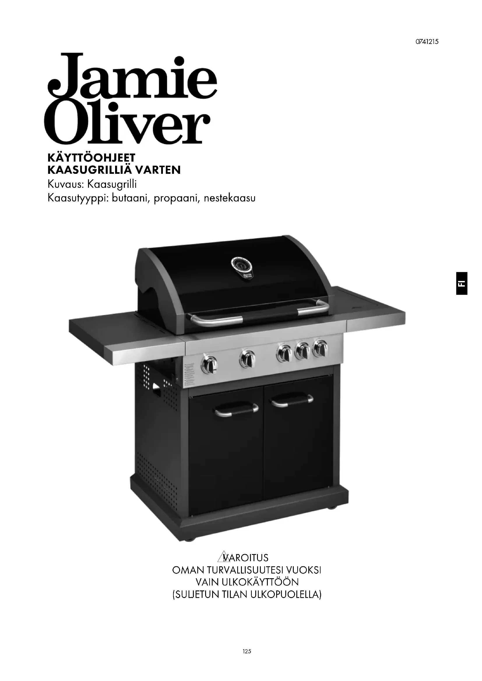 Lue nämä ohjeet huolellisesti ja varmista, että grilli asennetaan ja kootaan ja että sitä hoidetaan ja huolletaan näiden ohjeiden mukaisesti. Näiden ohjeiden noudattamatta jättäminen saattaa aiheuttaa ruumiinvamman ja/tai omaisuusvahingon. Jos sinulla on kysyttävää grillin kokoamisesta tai käytöstä, ota yhteyttä jälleenmyyjään, kaasutoimittajaan, valmistajaan, merkin edustajaan tai etsi tukea internetsivuilta www.jamieoliverbbq.com. Huomautuksia käyttäjälle: