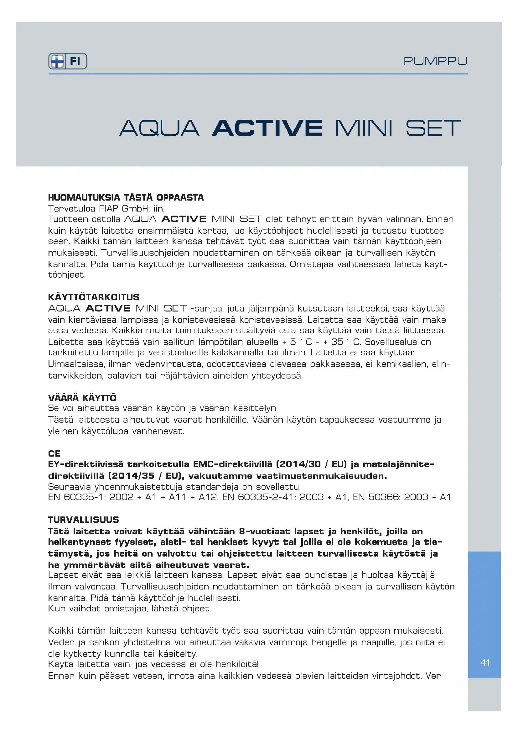 KÄYTTÖOHJE Aqua Active Mini set 1000 Fiap