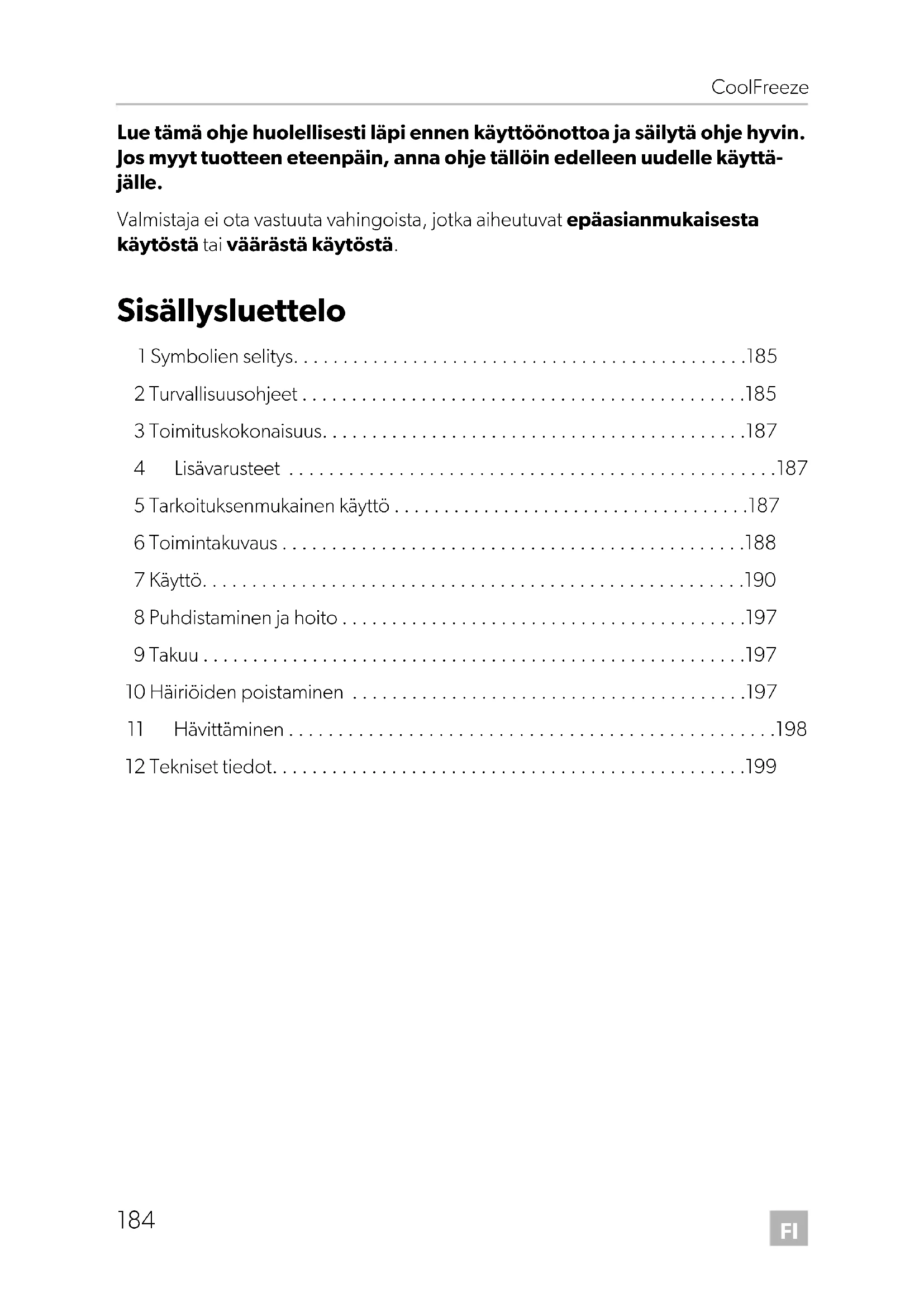 - 5 Tarkoituksenmukainen käyttö p. 187