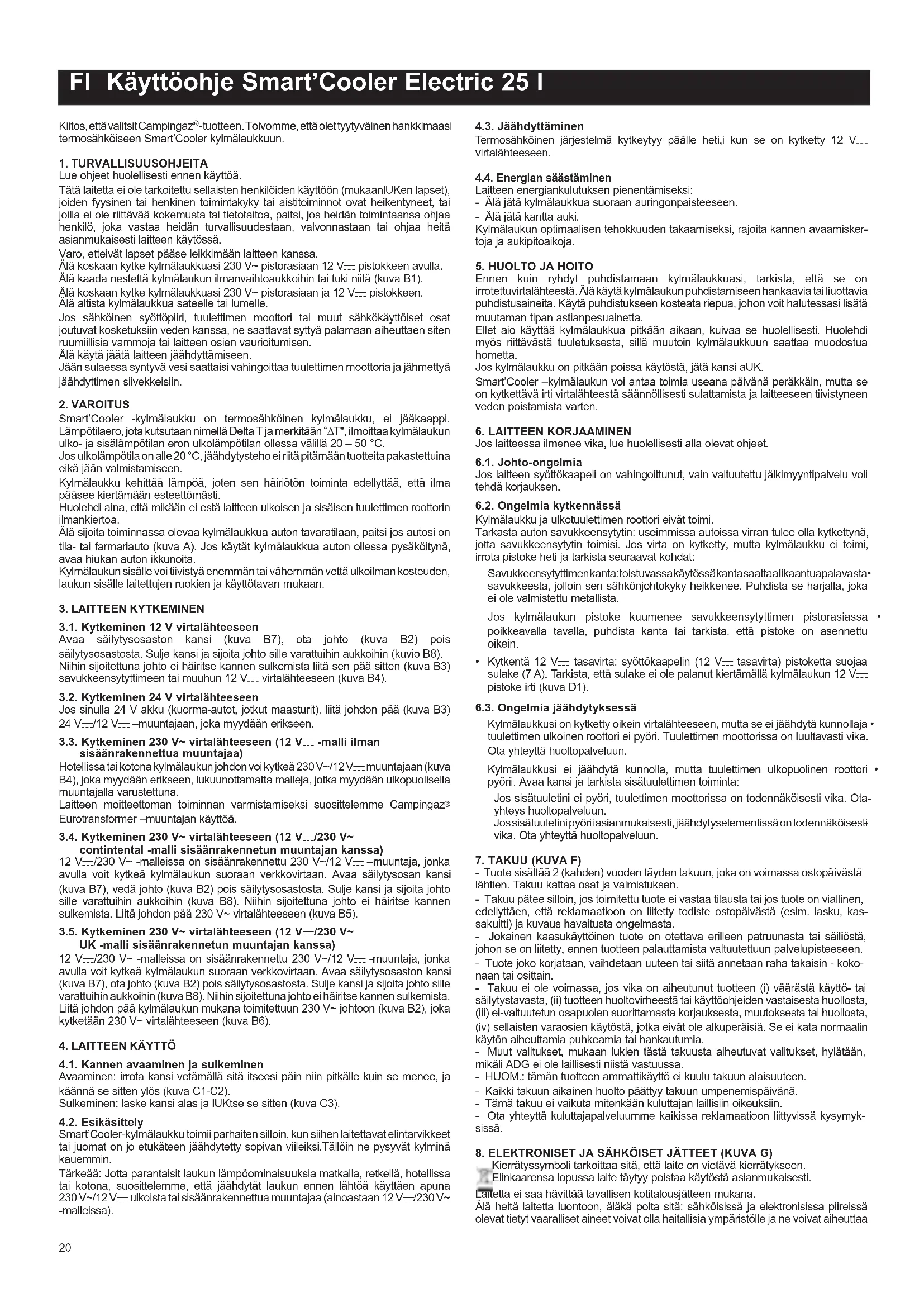 KÄYTTÖOHJE SmartCooler Electric 25L CAMPINGAZ