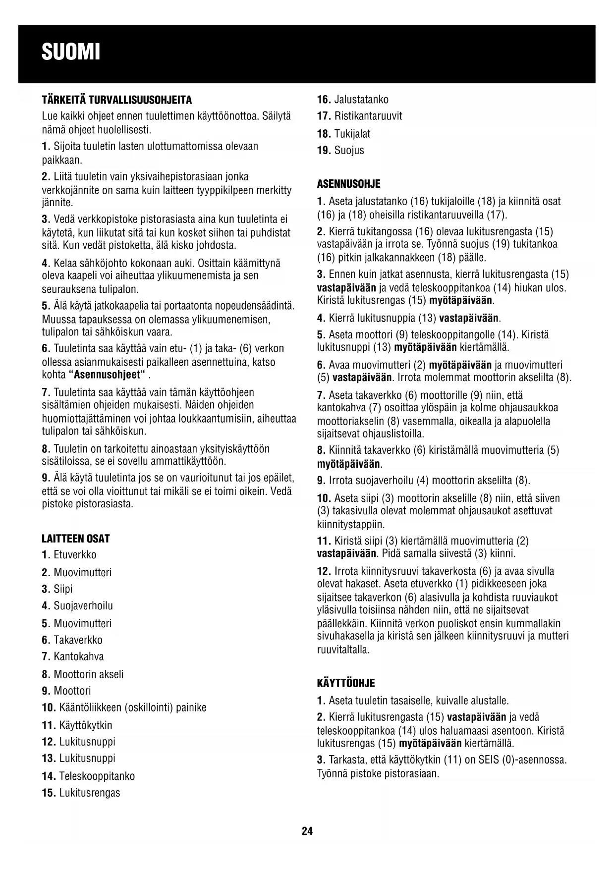 7. Tuuletinta saa käyttää vain tämän käyttöohjeen