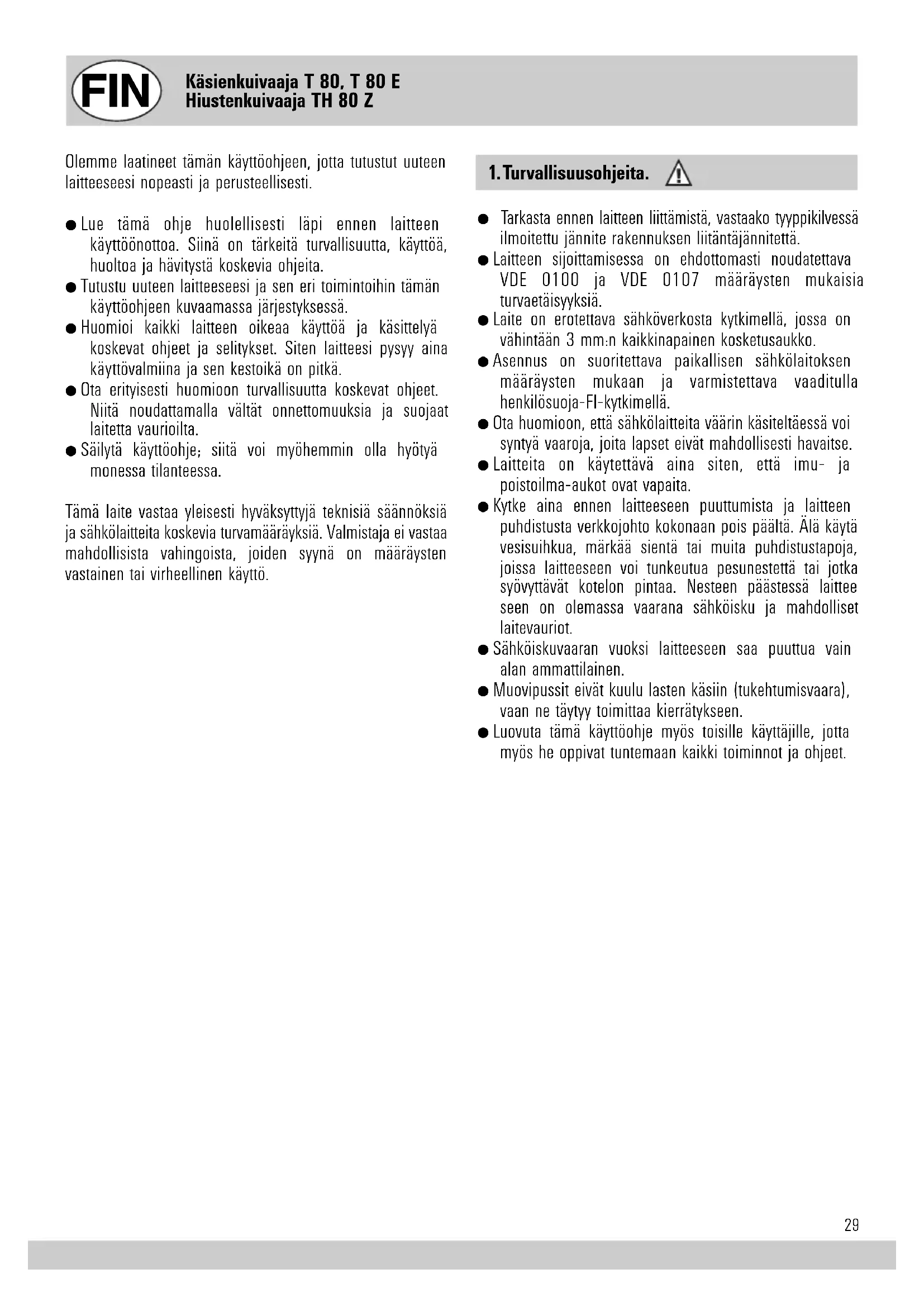 T 80 E - Käsikuivain Starmix - Ilmainen käyttöohje ja opas
