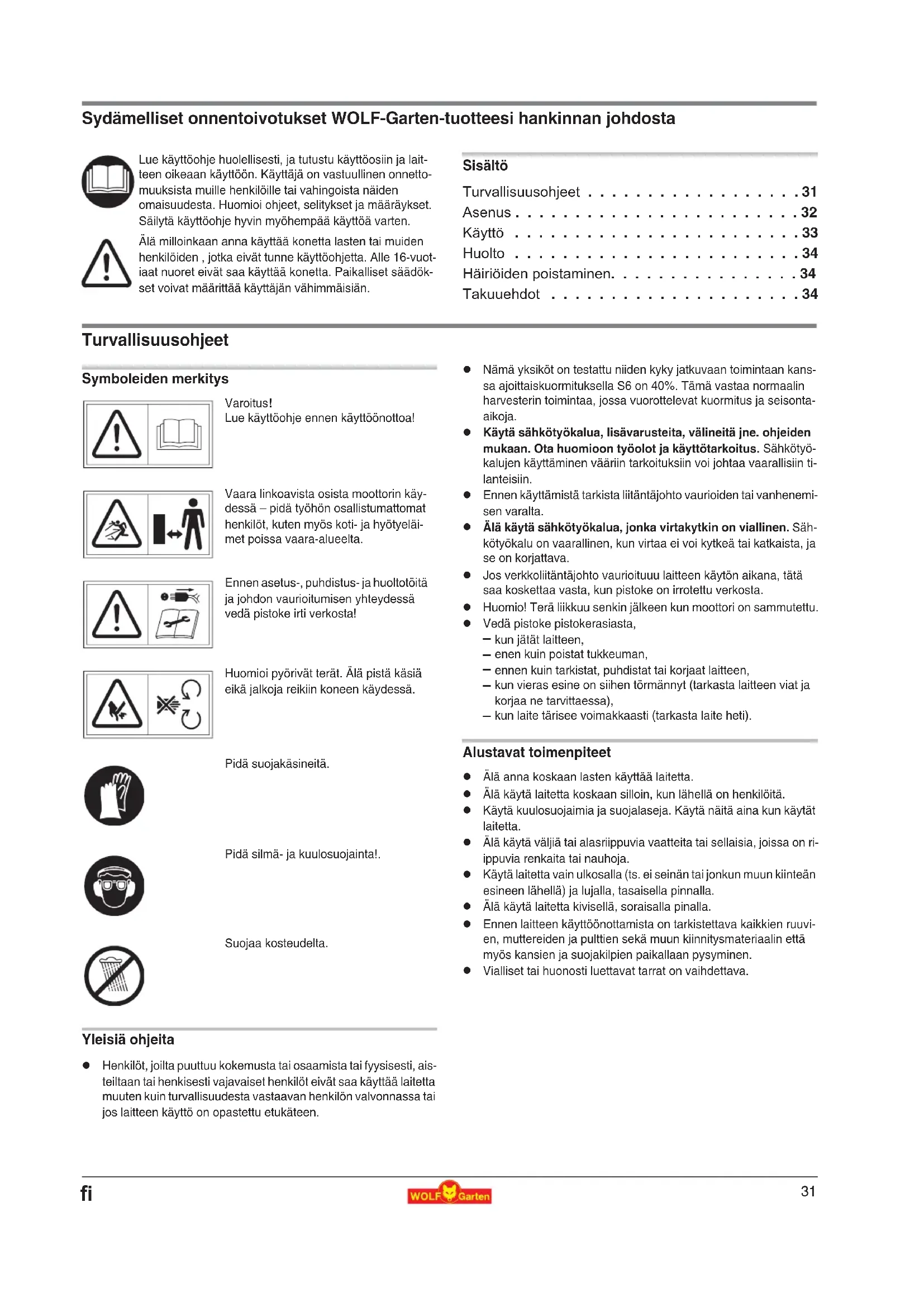 - Korjauta tai vaihdata kaikki vialiset osat (käytä vain alkuperäisä WOLF-Garten-varaosia).