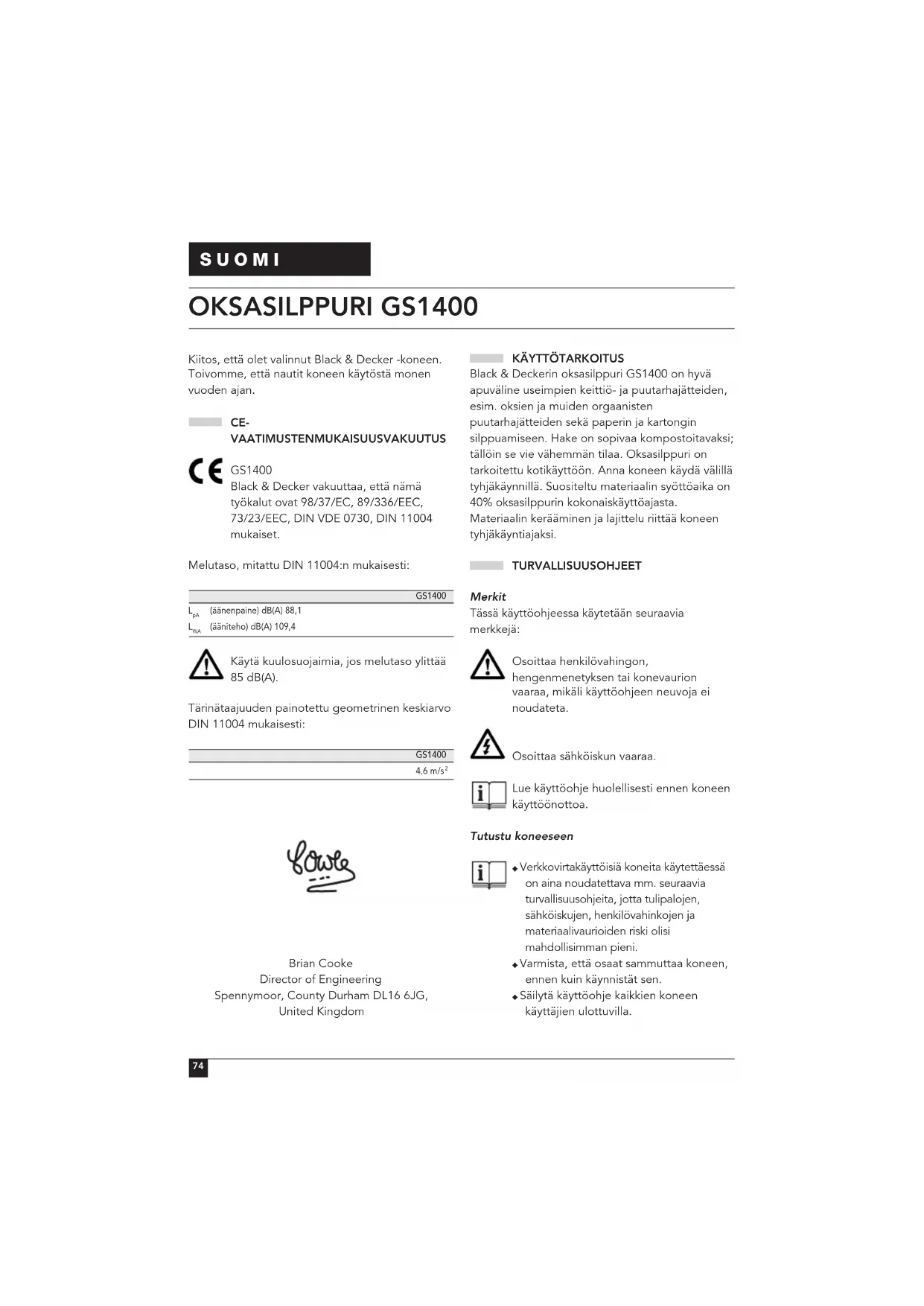 KÄYTTÖOHJE GS1400 BLACK & DECKER