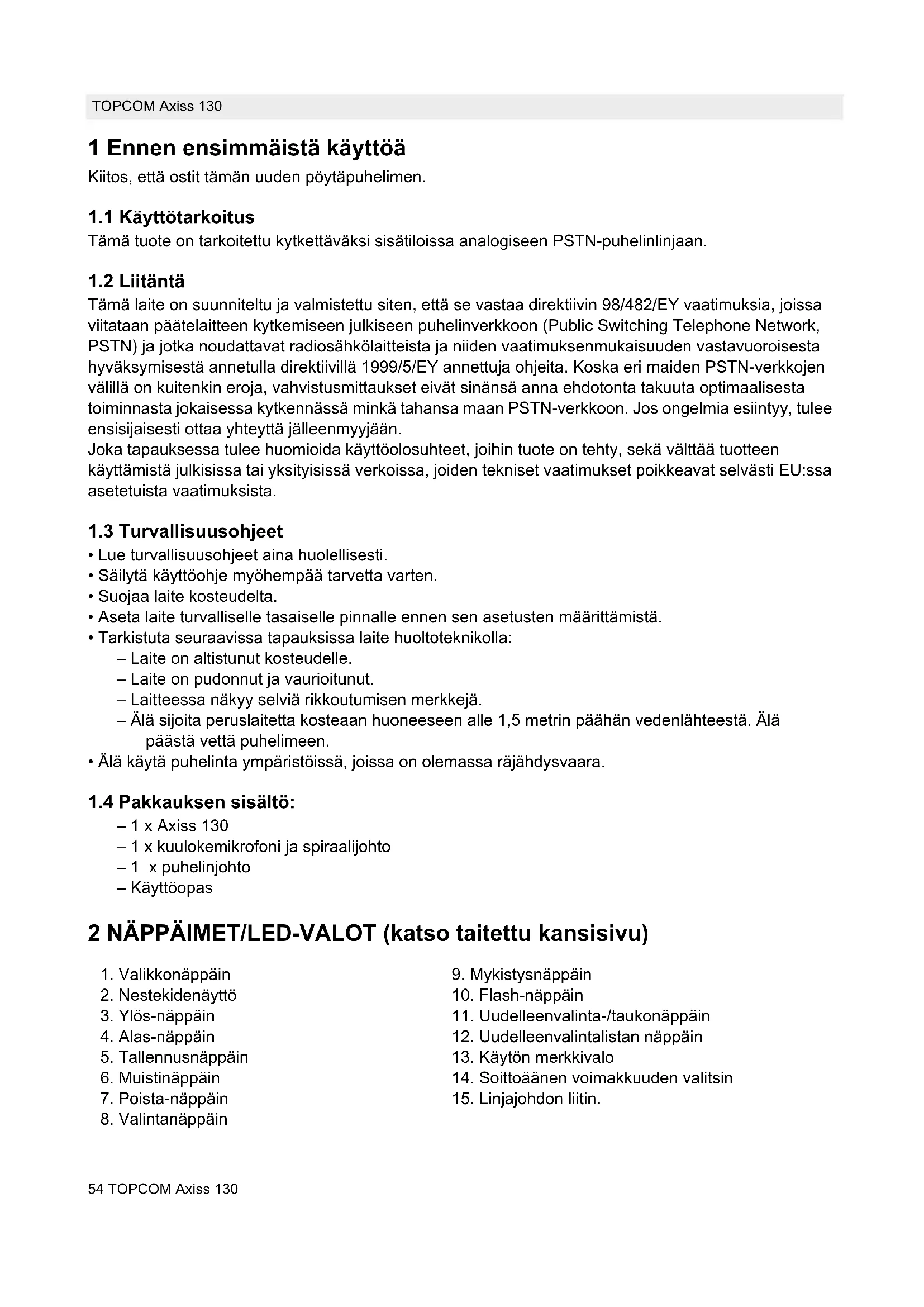 KÄYTTÖOHJE Axiss 130 TOPCOM