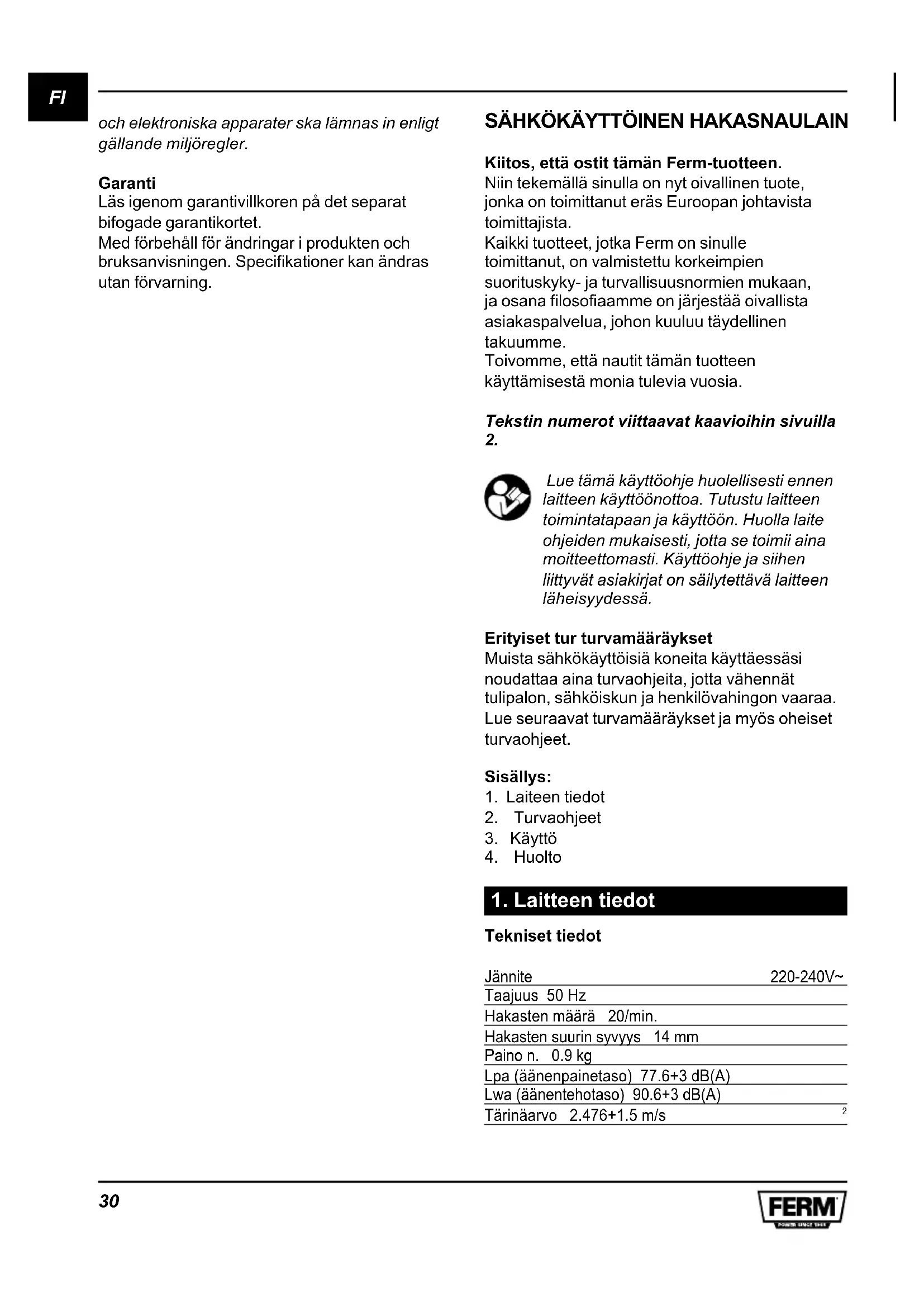 KÄYTTÖOHJE ETM1003 Ferm